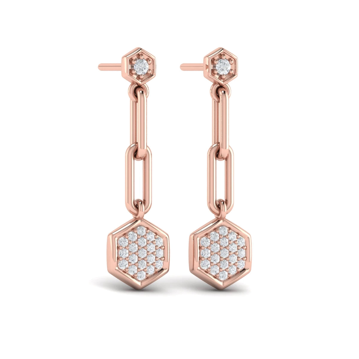 You're reviewing: Diamond Honeycomb Link Long Drop Statement Earrings Rose Gold