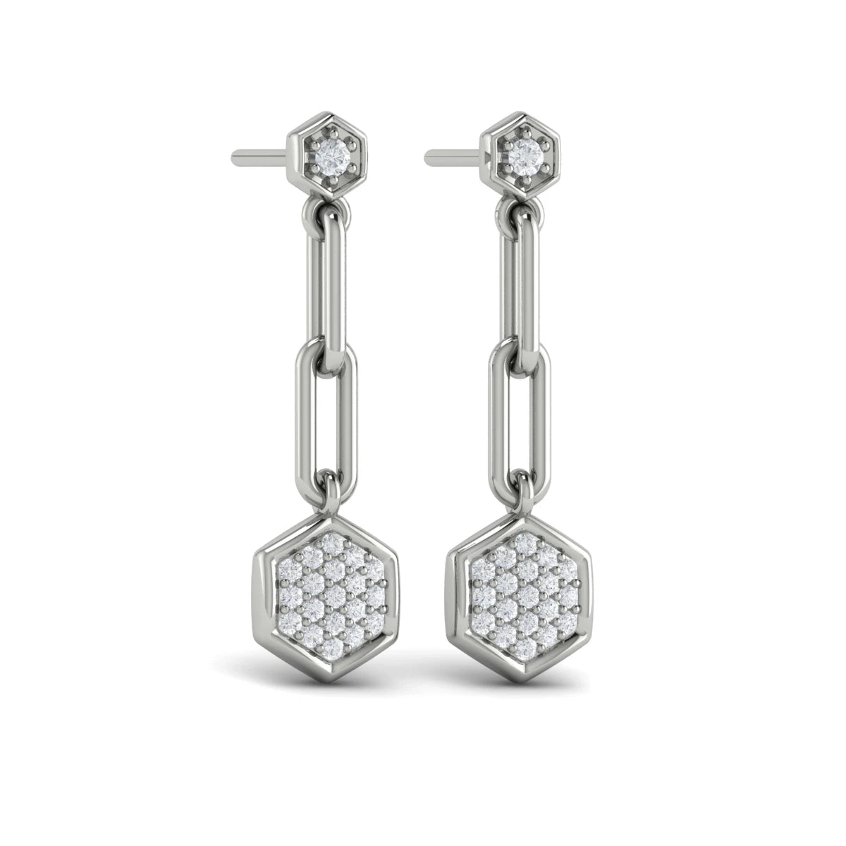 Diamond Honeycomb Link Long Drop Statement Earrings White Gold