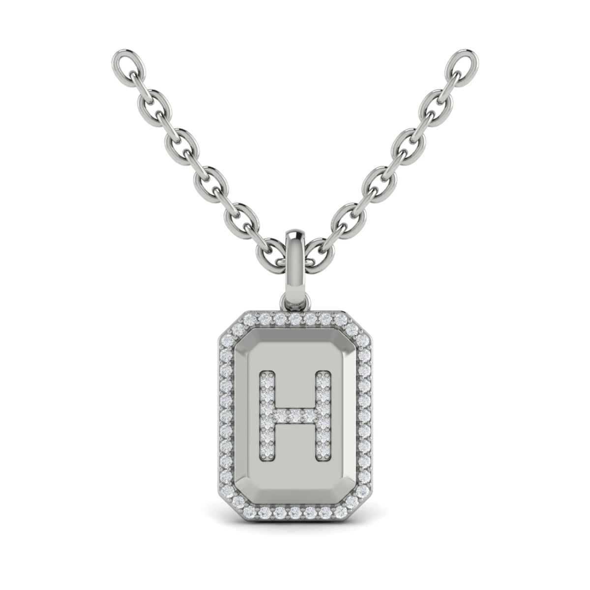 You're reviewing: Diamond Medallion Alphabet Pendant Link Necklace, H Platinum
