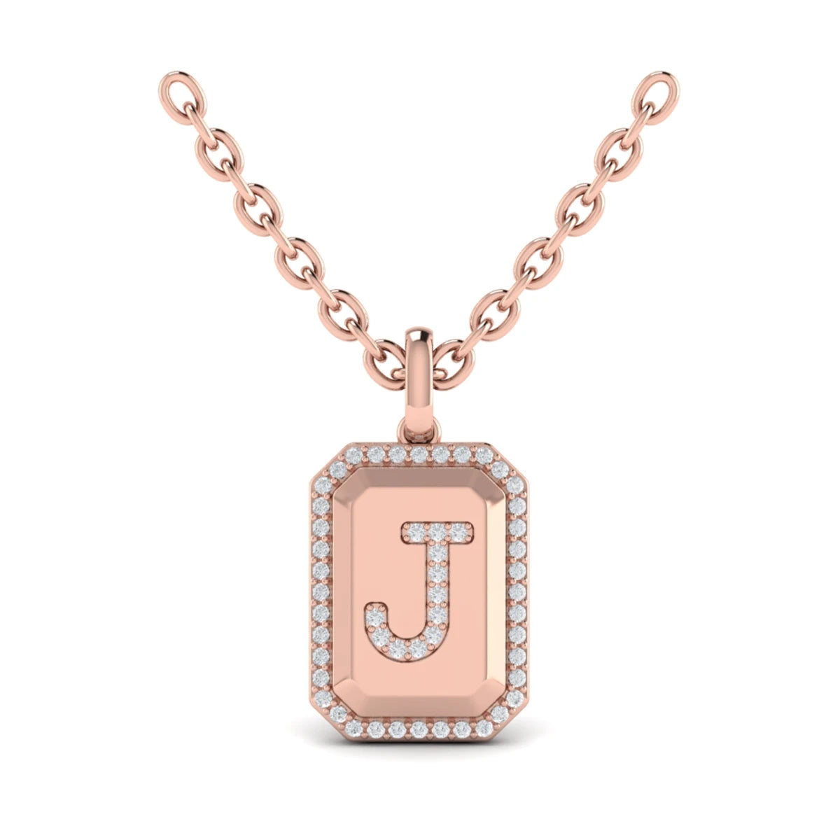 You're reviewing: Diamond Medallion Alphabet Pendant Link Necklace, J Rose Gold