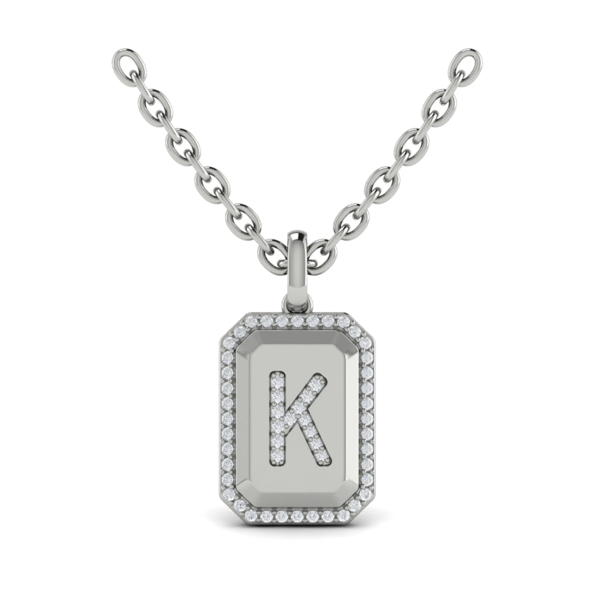 You're reviewing: Diamond Medallion Alphabet Pendant Link Necklace, K White Gold