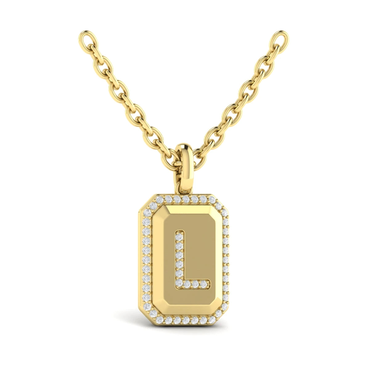 Diamond Medallion Alphabet Pendant Link Necklace, L Yellow Gold