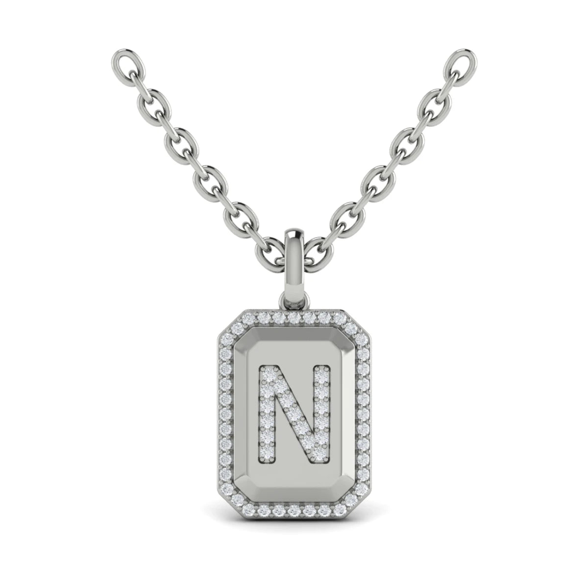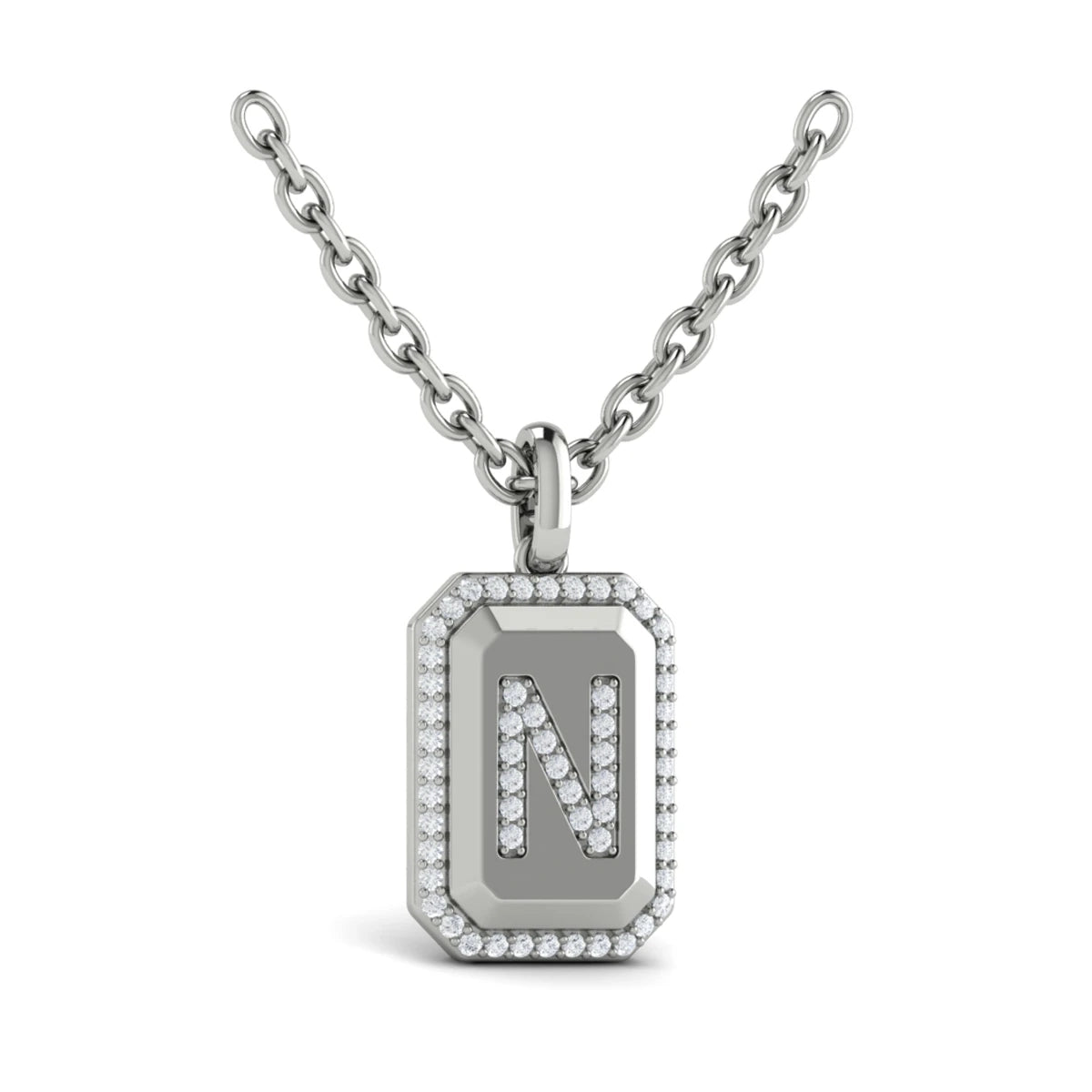 You're reviewing: Diamond Medallion Alphabet Pendant Link Necklace, N Platinum