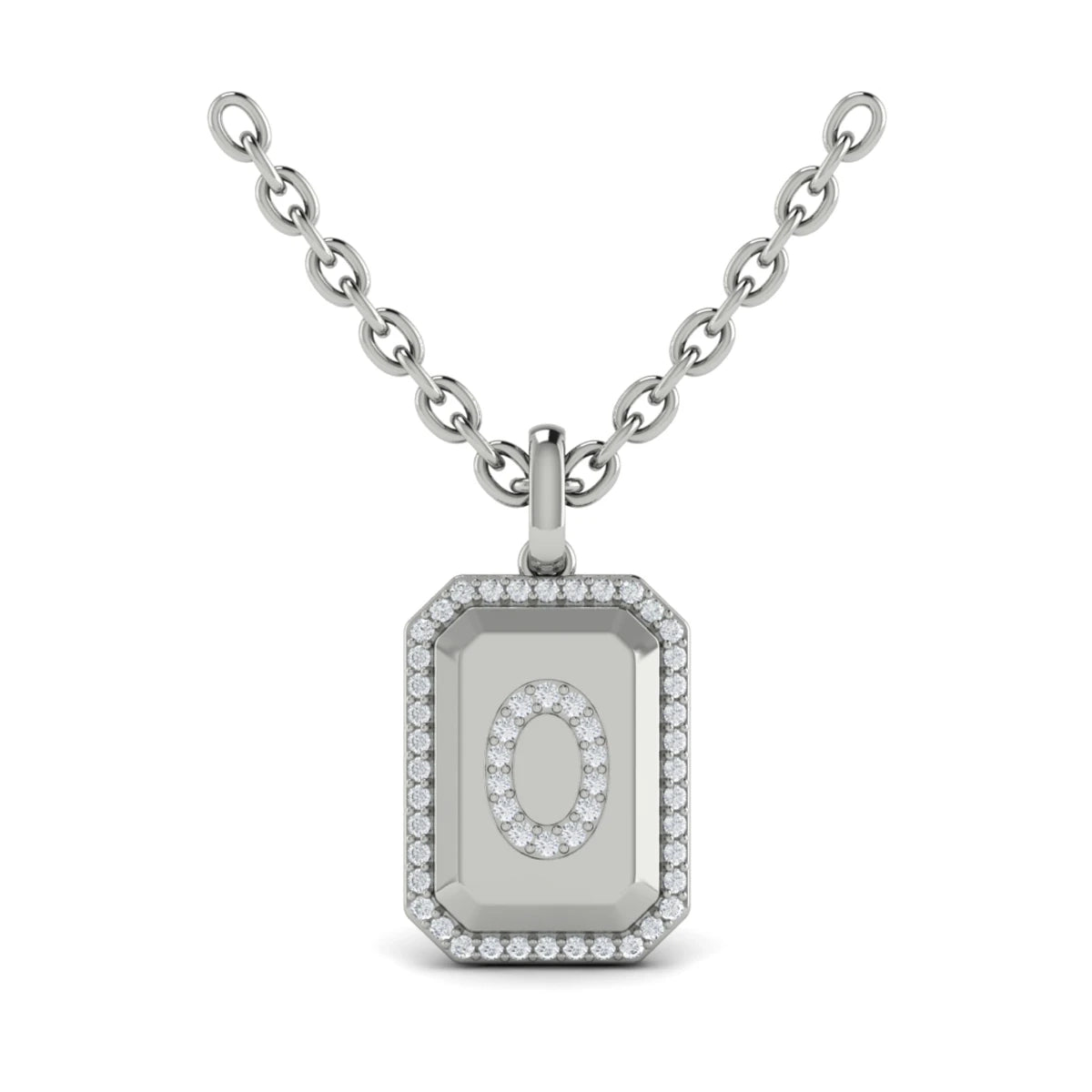 You're reviewing: Diamond Medallion Alphabet Pendant Link Necklace, O Platinum