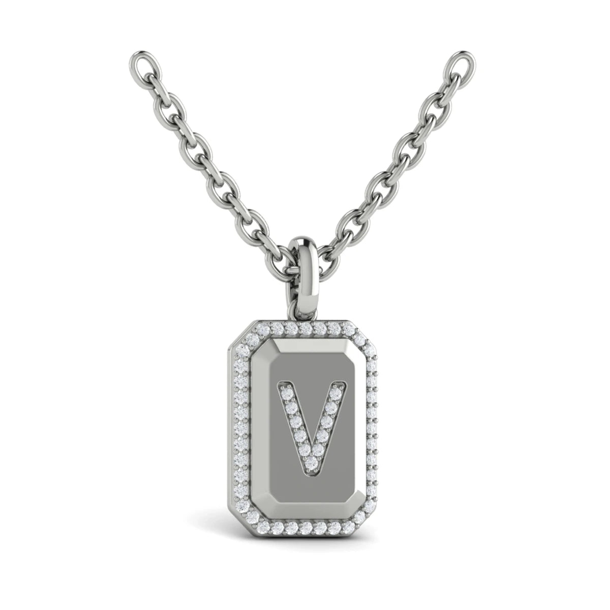You're reviewing: Diamond Medallion Alphabet Pendant Link Necklace, V White Gold