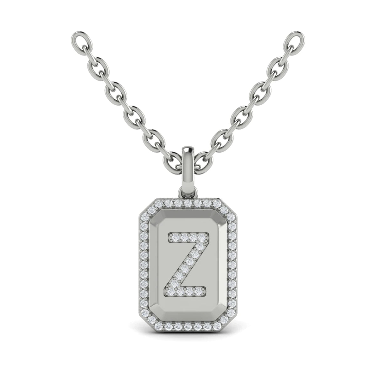 You're reviewing: Diamond Medallion Alphabet Pendant Link Necklace, Z White Gold