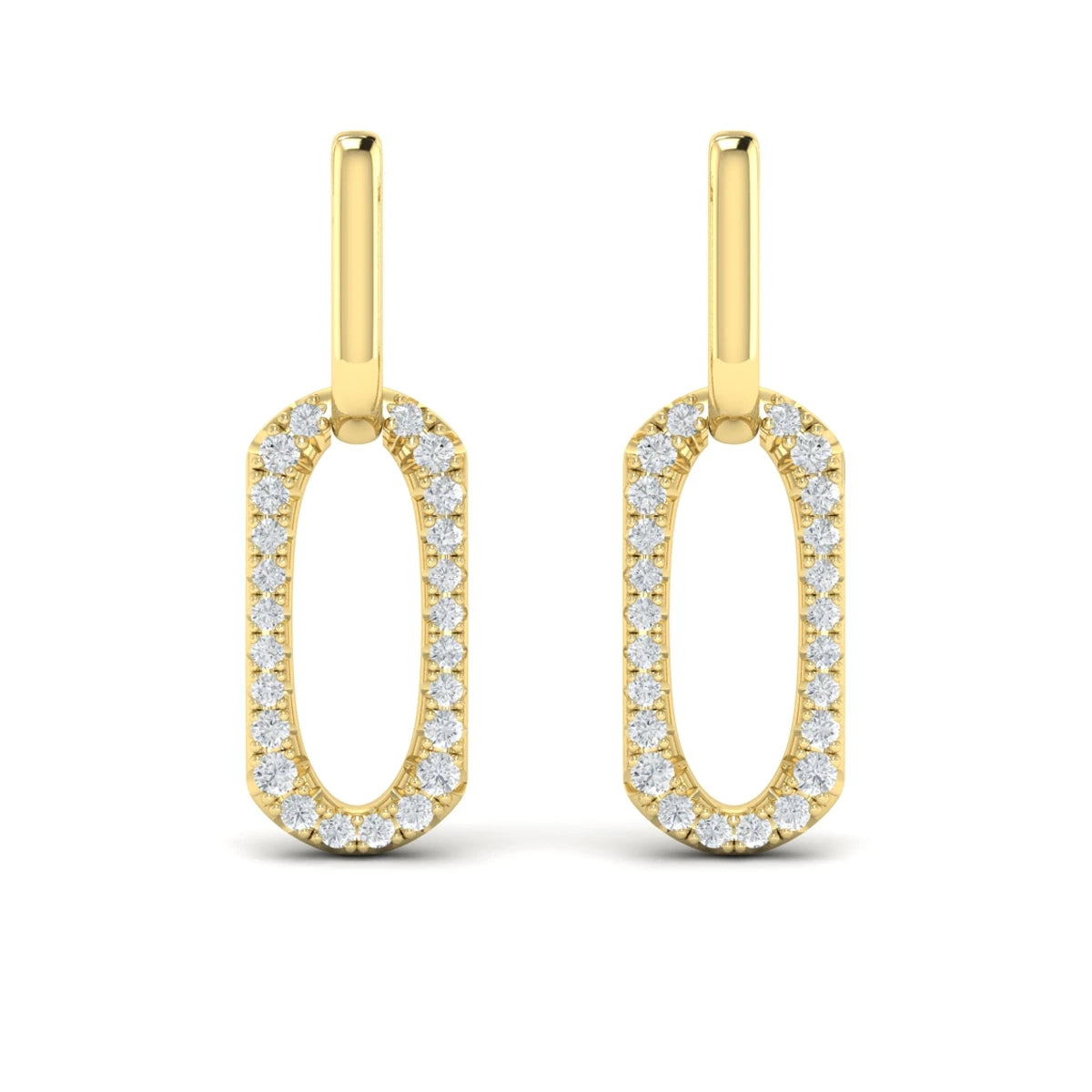 Diamond North South Open Oval Pendant Link Earrings Yellow Gold