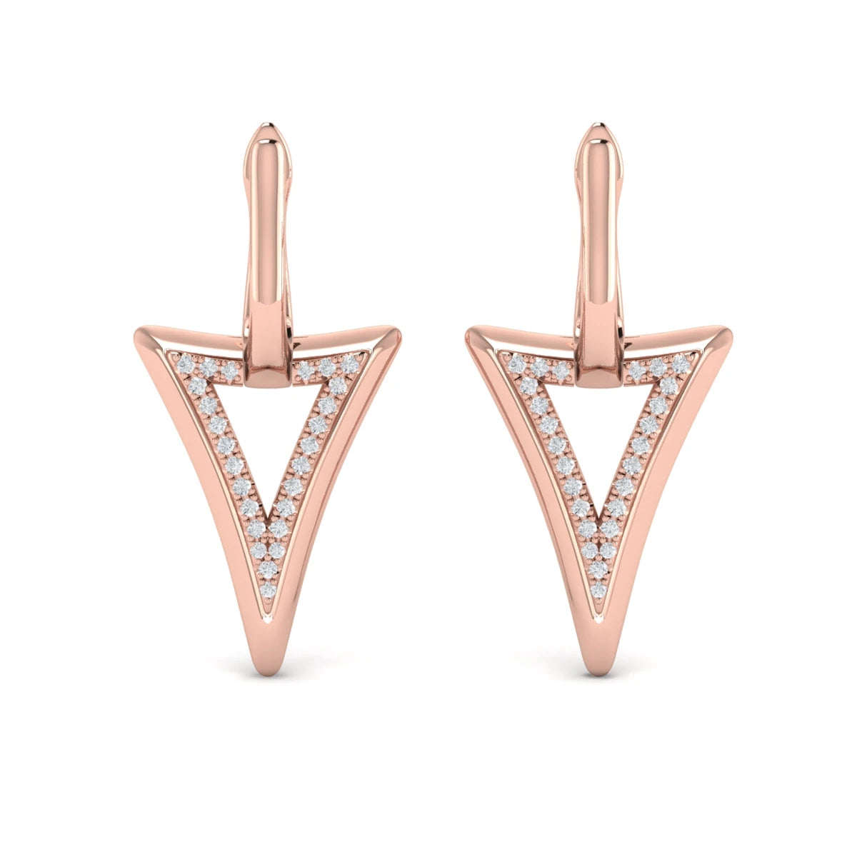 Diamond Open Double Trinity Huggie Earrings Rose Gold