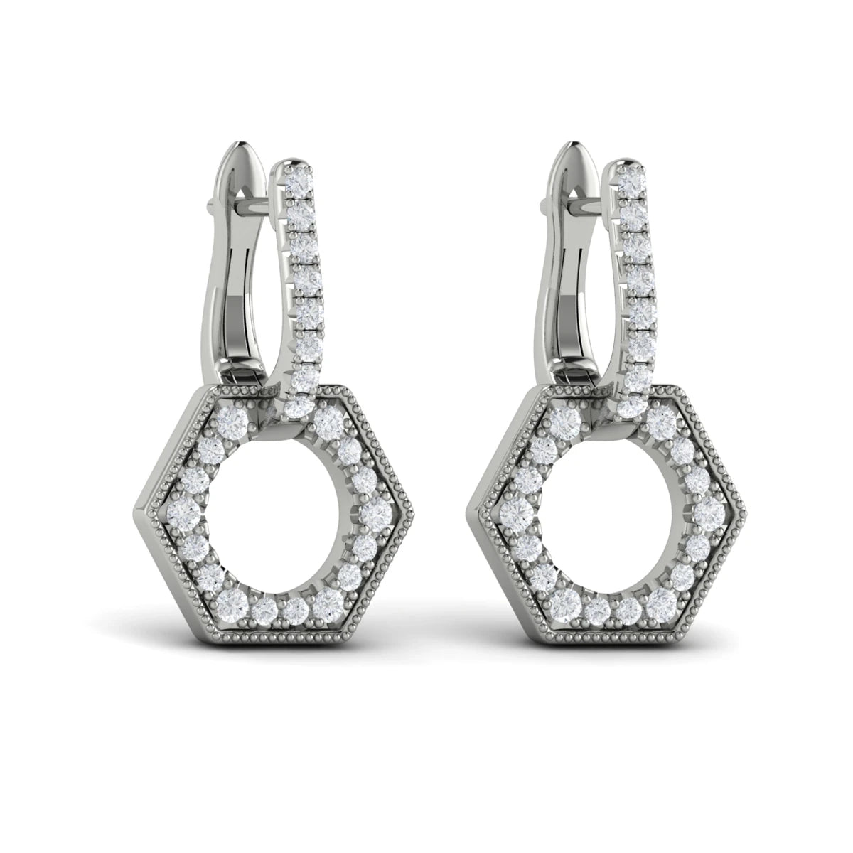 Diamond Open Honeycomb Drop Earrings White Gold