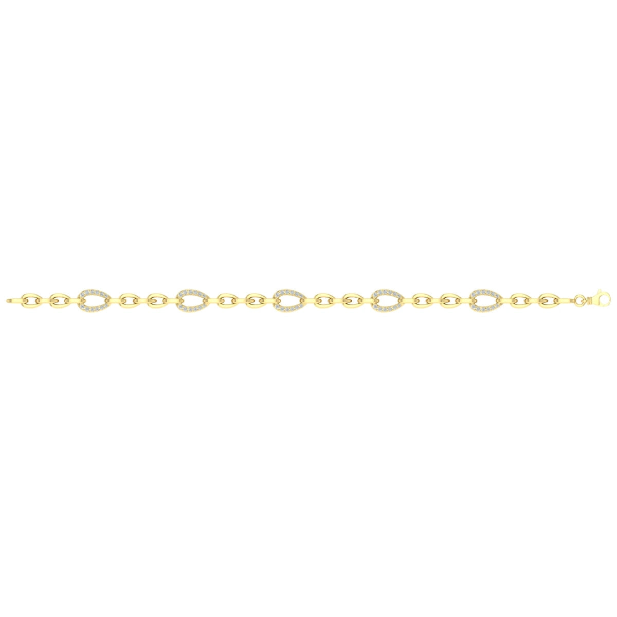 Diamond Open Tear Drop Link Bracelet Yellow Gold