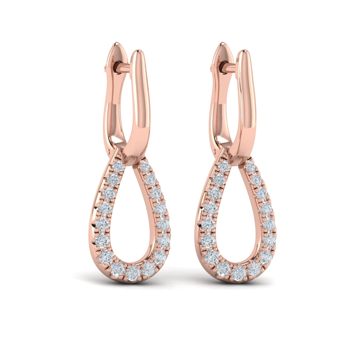 Diamond Open Tear Drop Link Earrings Rose Gold