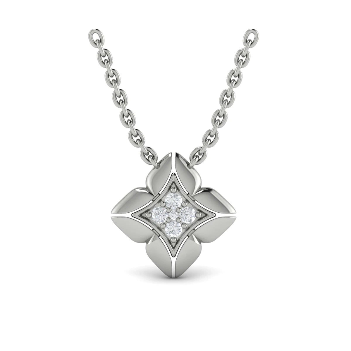 Diamond Vlora Star Floral Pendant Necklace White Gold