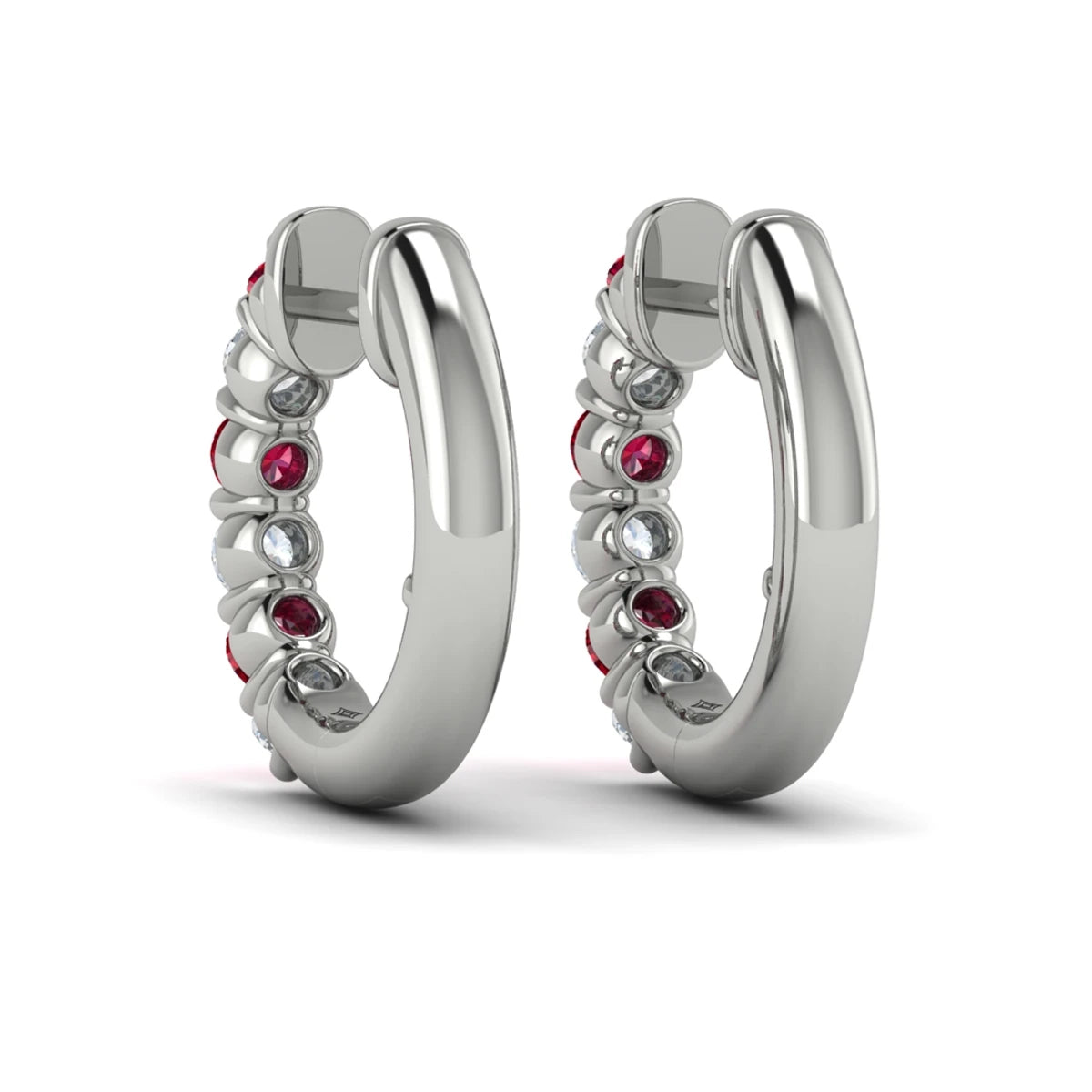 Forward-facing Diamond and Ruby Open Hoop Earrings White Gold