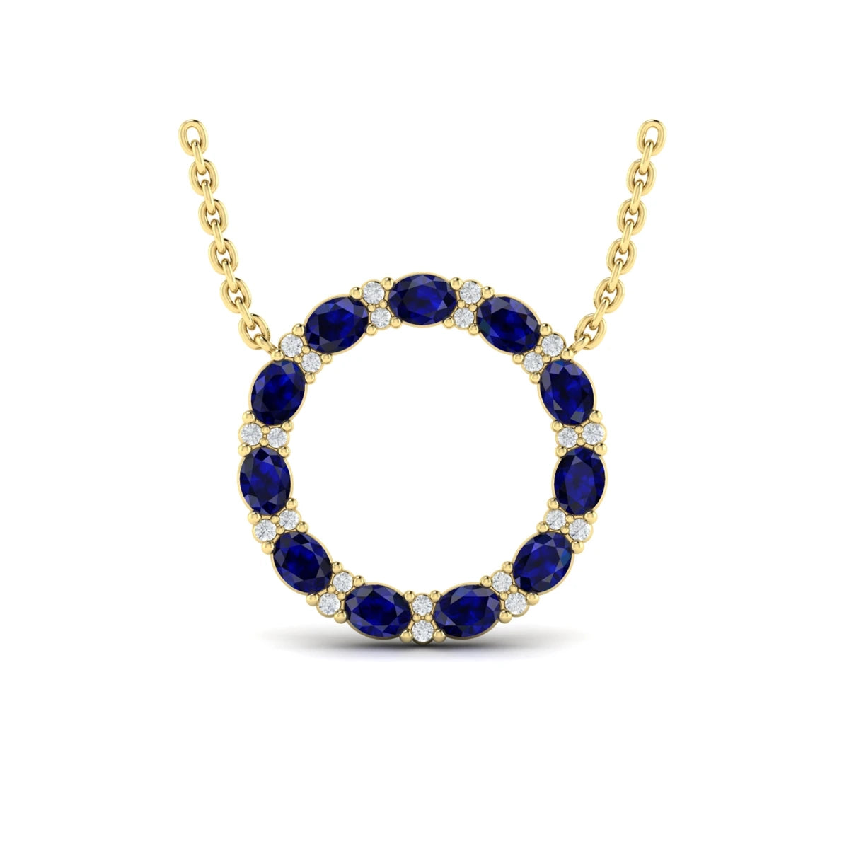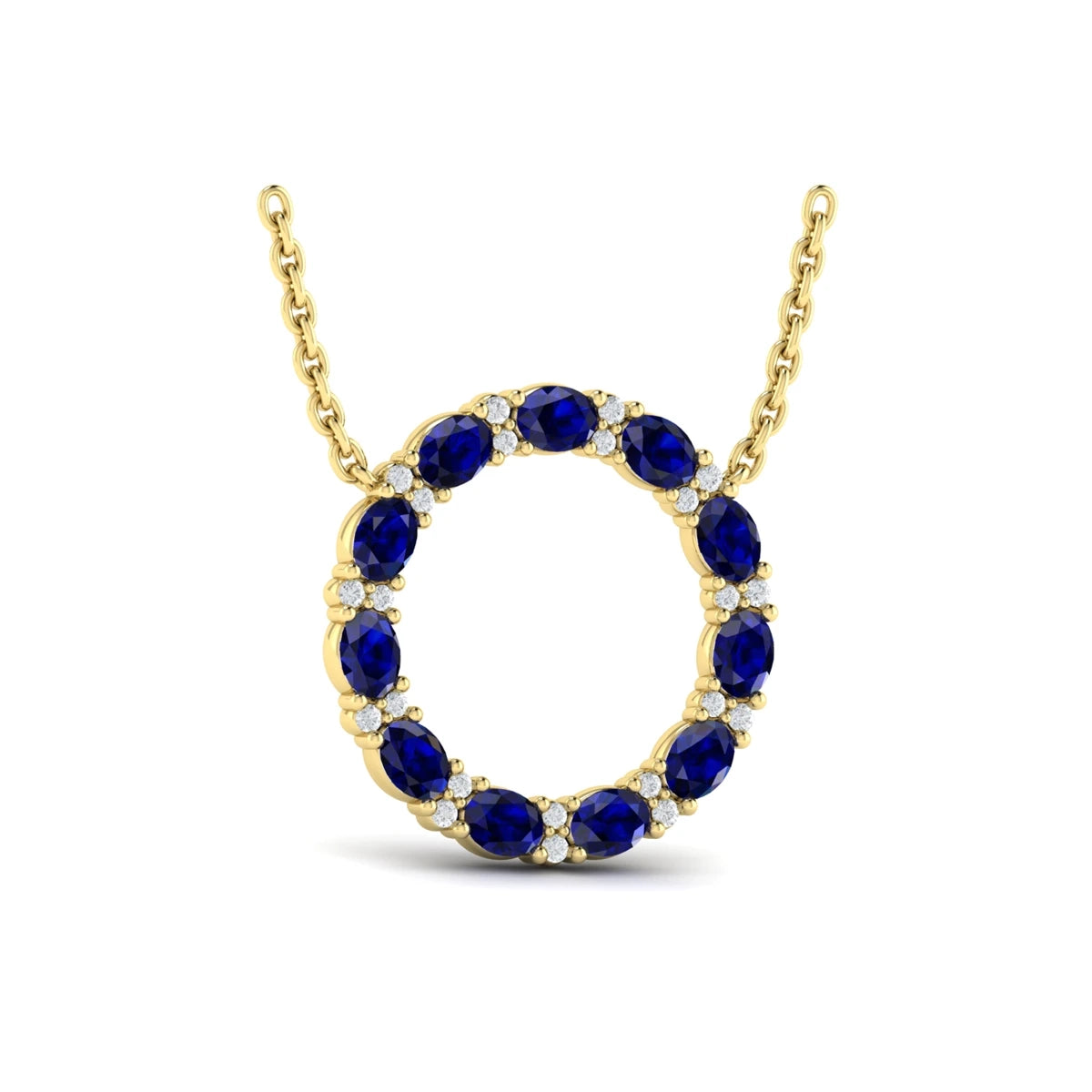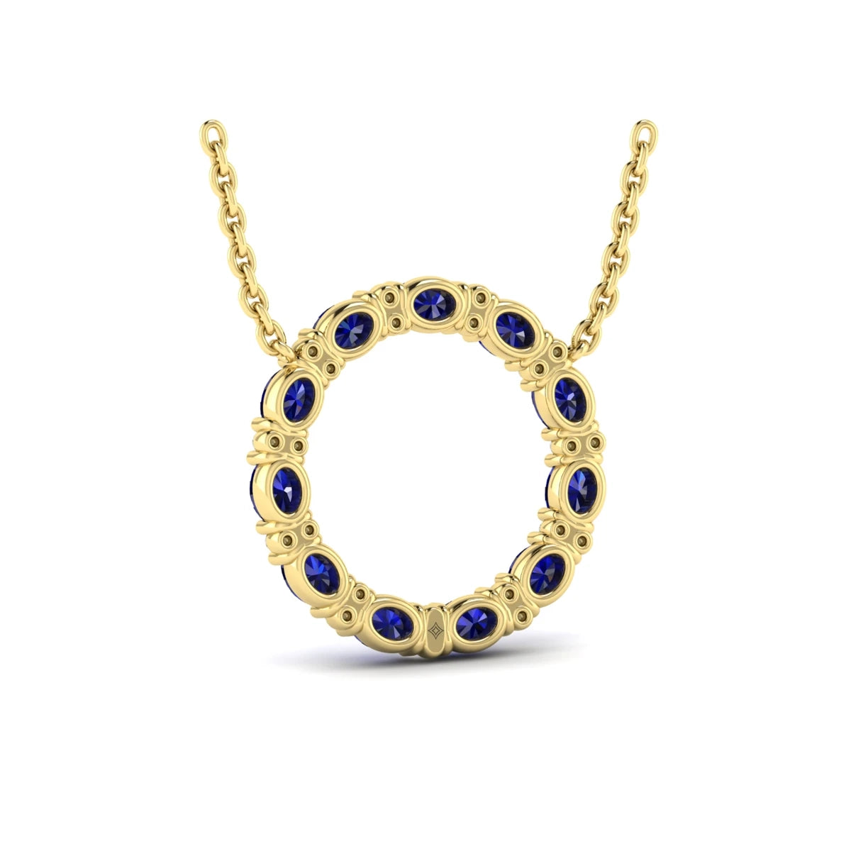 You're reviewing: Oval Blue Sapphire and Diamond Open Circle Pendant Necklace Yellow Gold