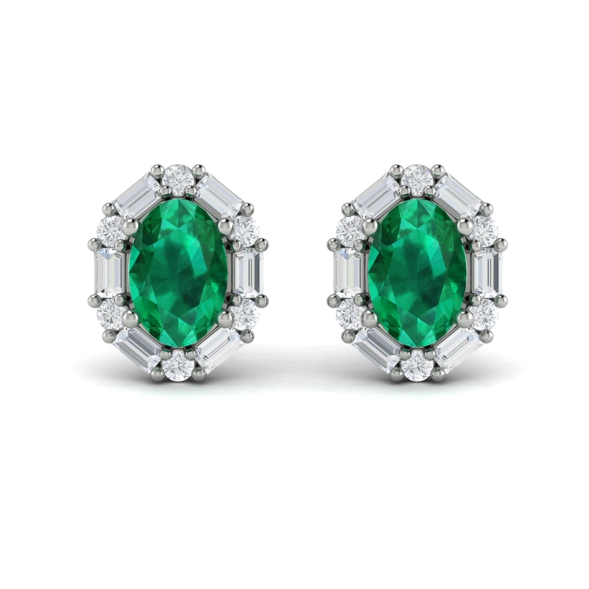 Oval Emerald and Diamond Baguette Earrings White Gold