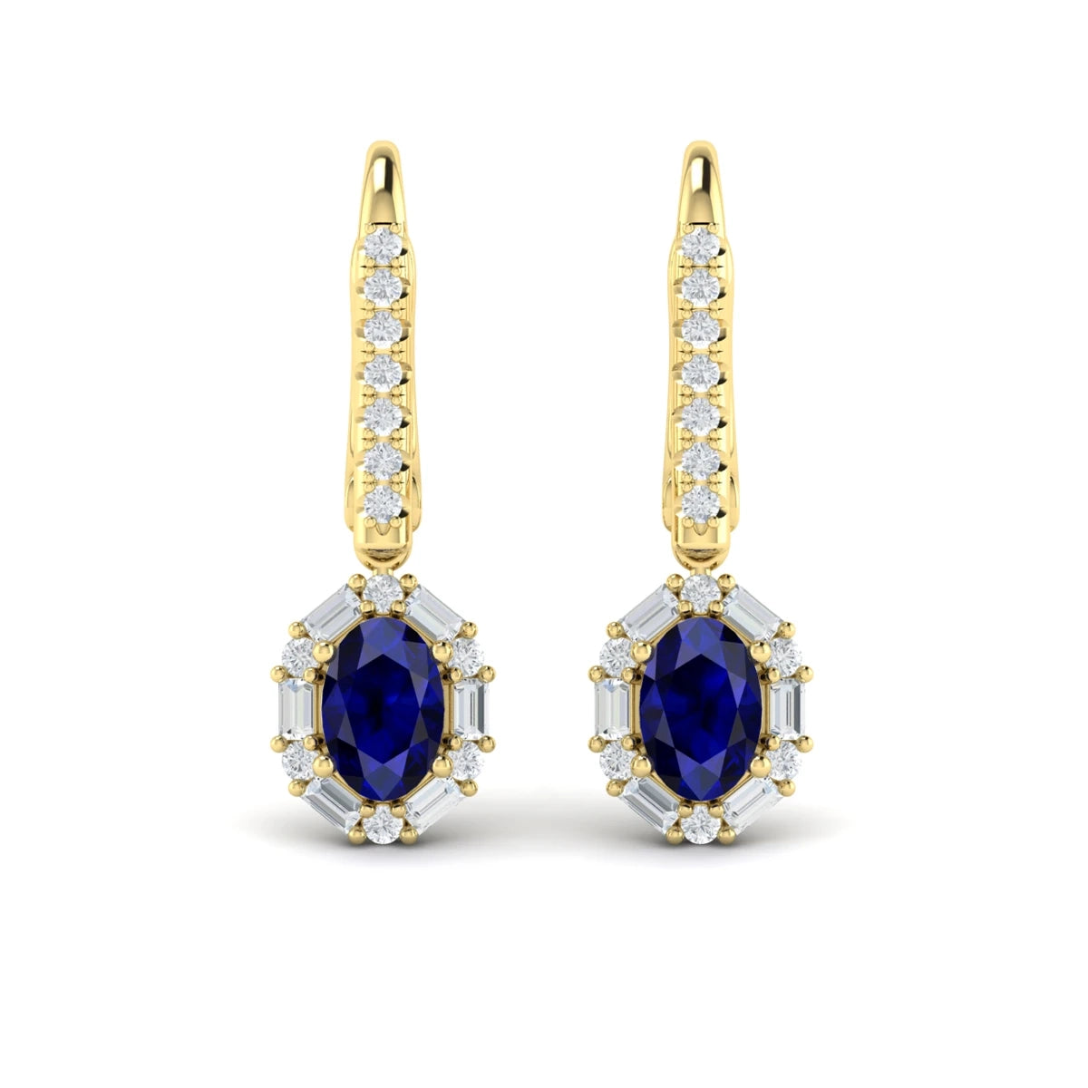 Oval Sapphire and Diamond Baguette Earrings Yellow Gold