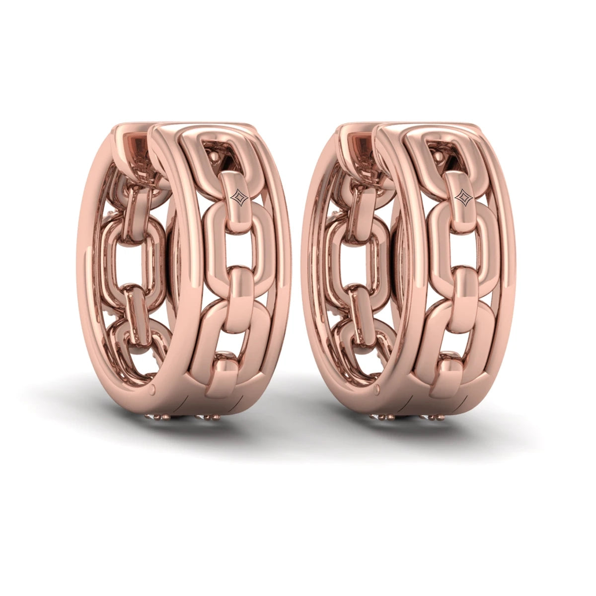 Reverse Channel Set Link Huggie Earrings Rose Gold