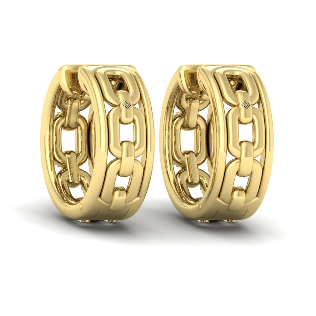 You're reviewing: Reverse Channel Set Link Huggie Earrings Yellow Gold