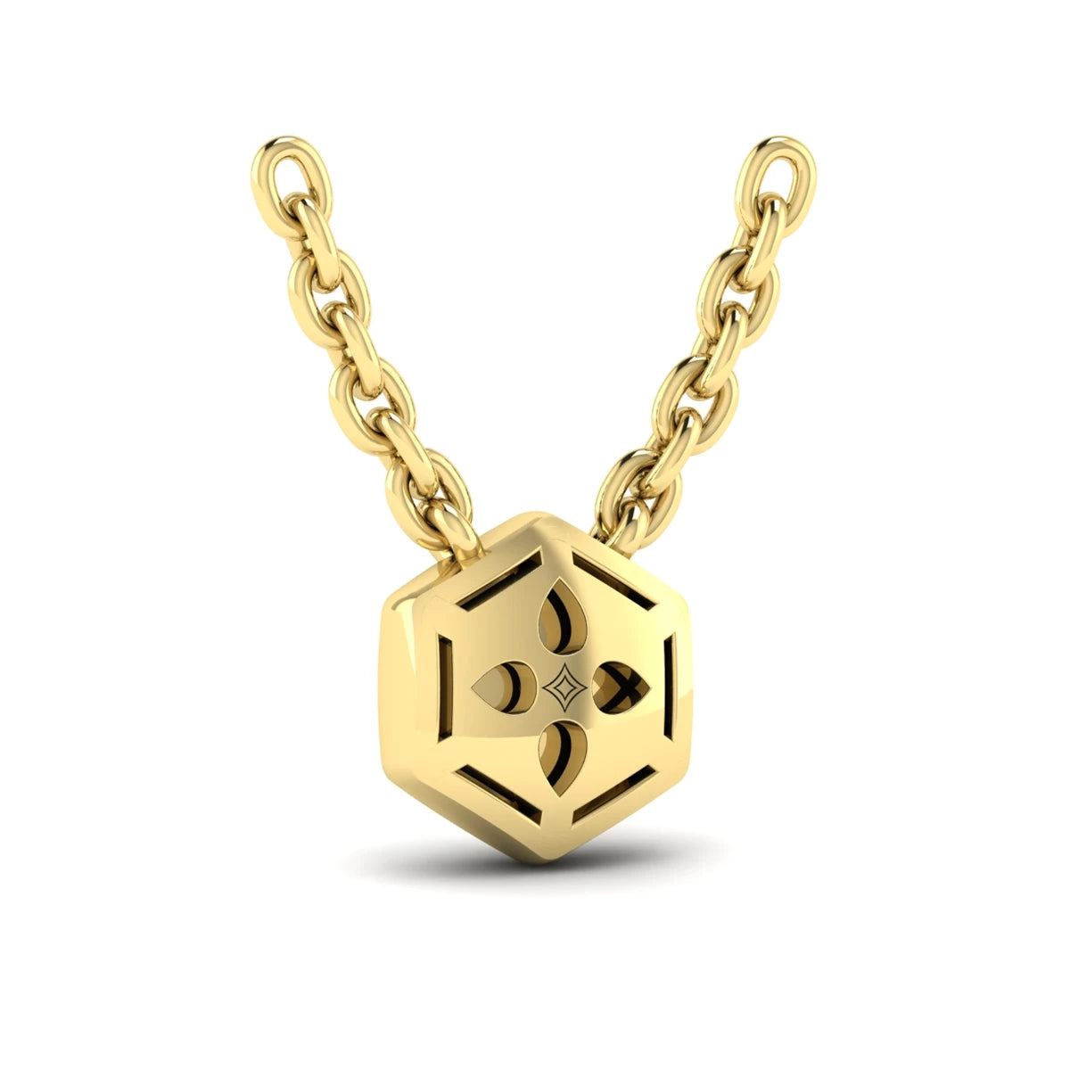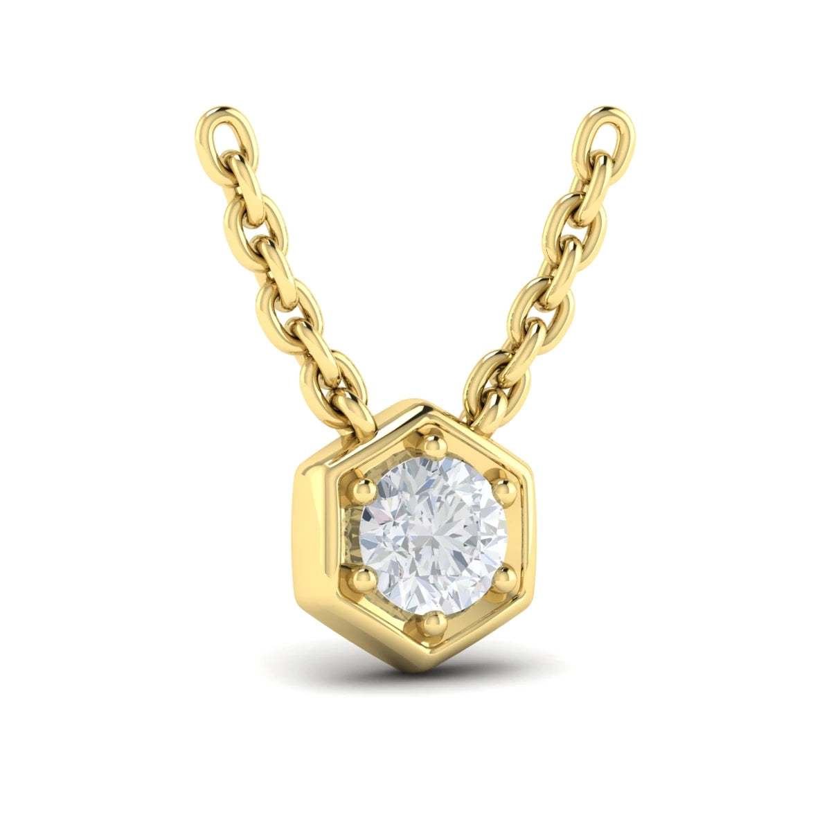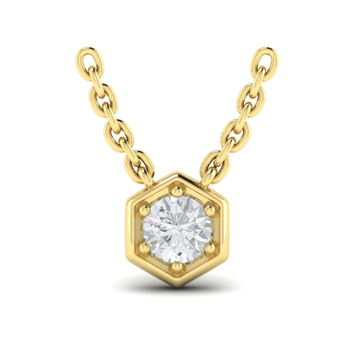 Single Diamond Honeycomb Pendant Necklace Yellow Gold