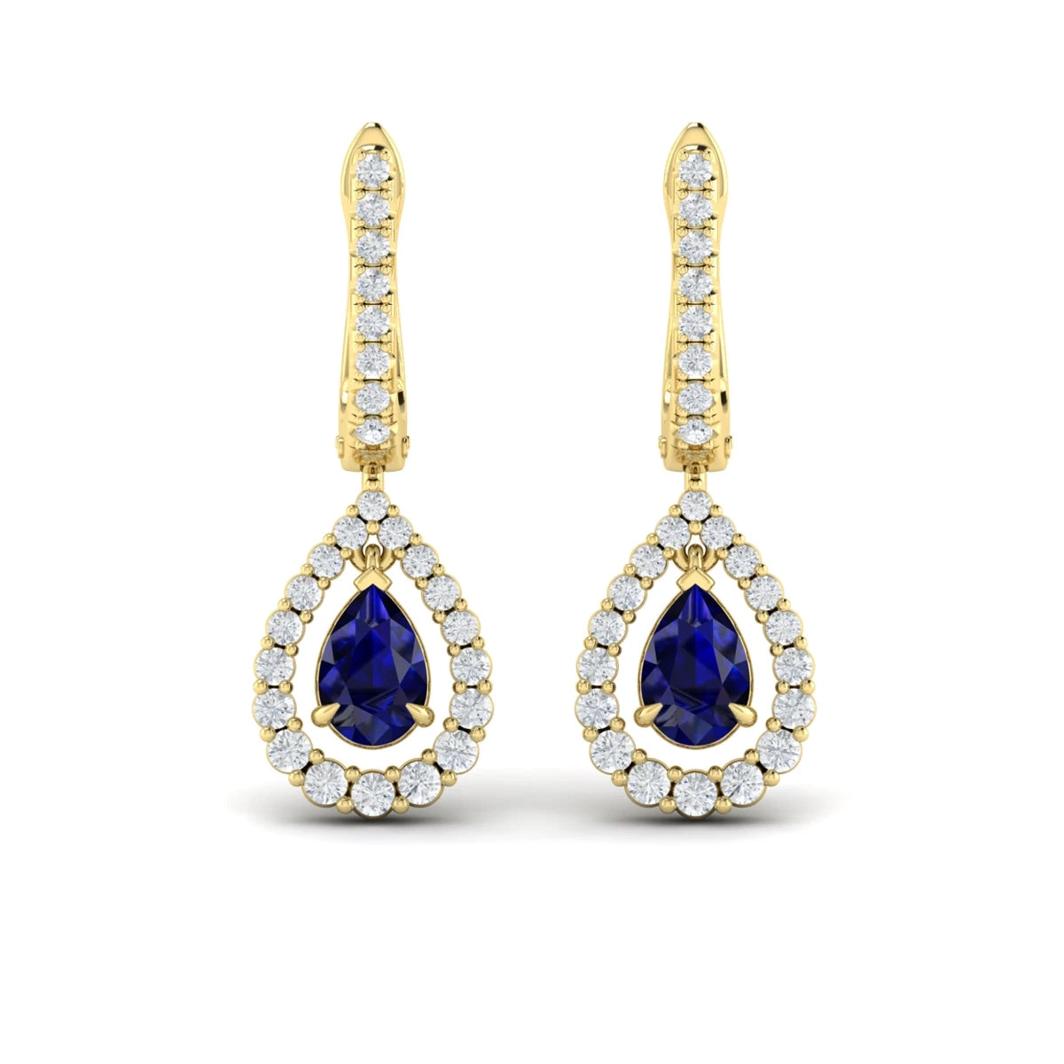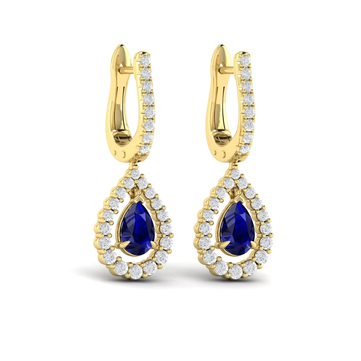 Tear Drop Sapphire and Diamond Earrings Yellow Gold