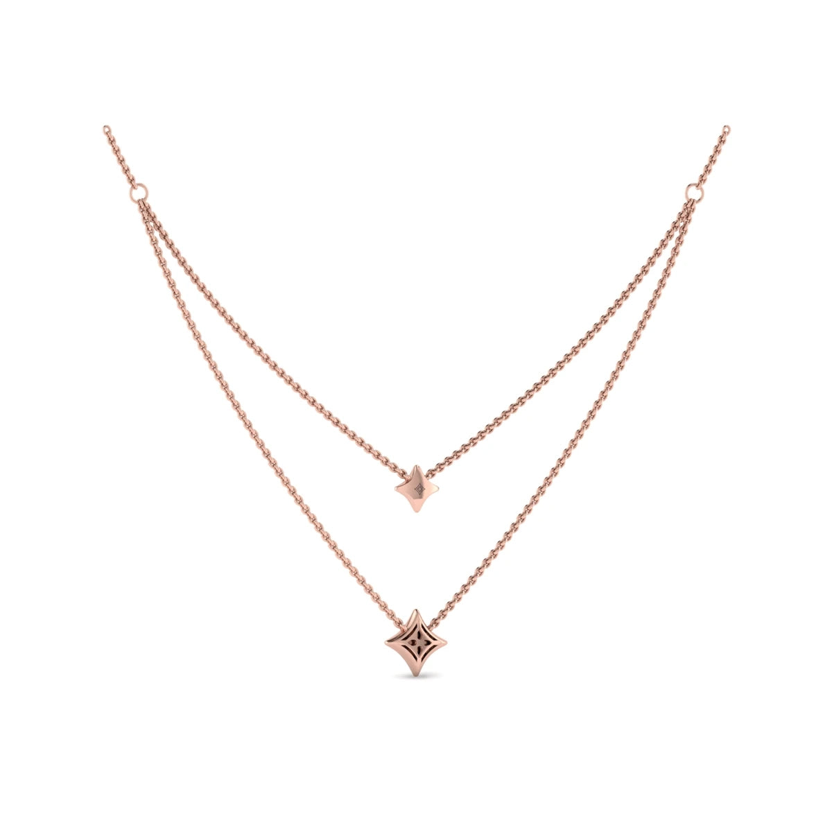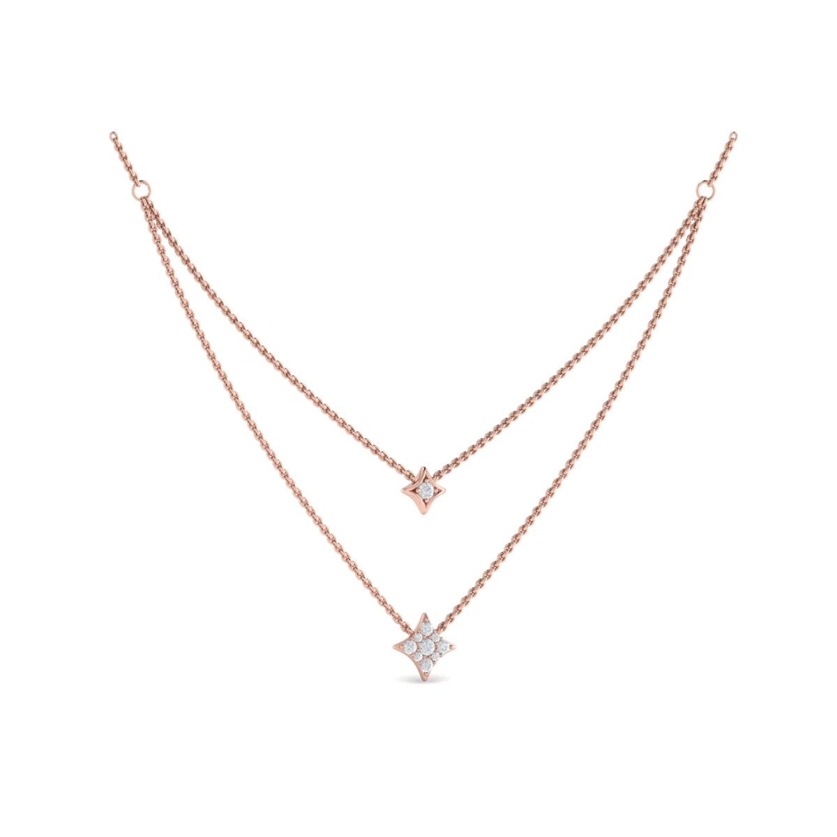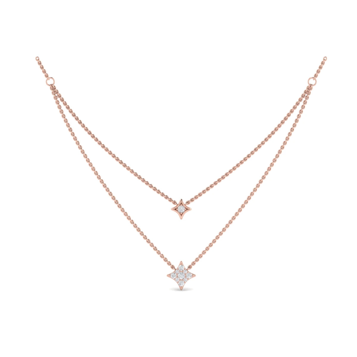Two Row Diamond Vlora Star Pendant Necklace Rose Gold
