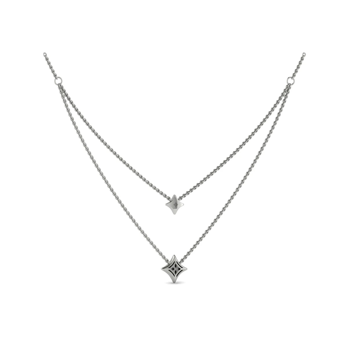 Two Row Diamond Vlora Star Pendant Necklace White Gold