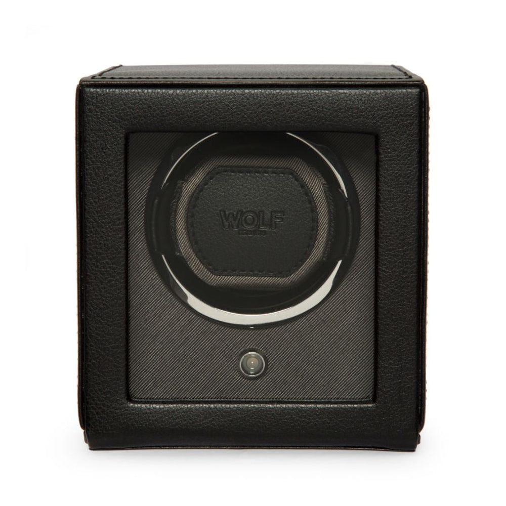 Young, smart and uncomplicated, the cub takes care of your watch with ease. Six sides perfectly proportioned to encase your timepiece safely and precisely. Never miss a beat in your busy life. Features black vegan leather, chrome finished hardware and single winding module.