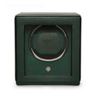 Young, smart and uncomplicated, the cub takes care of your watch with ease. Six sides perfectly proportioned to encase your timepiece safely and precisely. Never miss a beat in your busy life. Features green vegan leather, chrome finished hardware and single winding module.