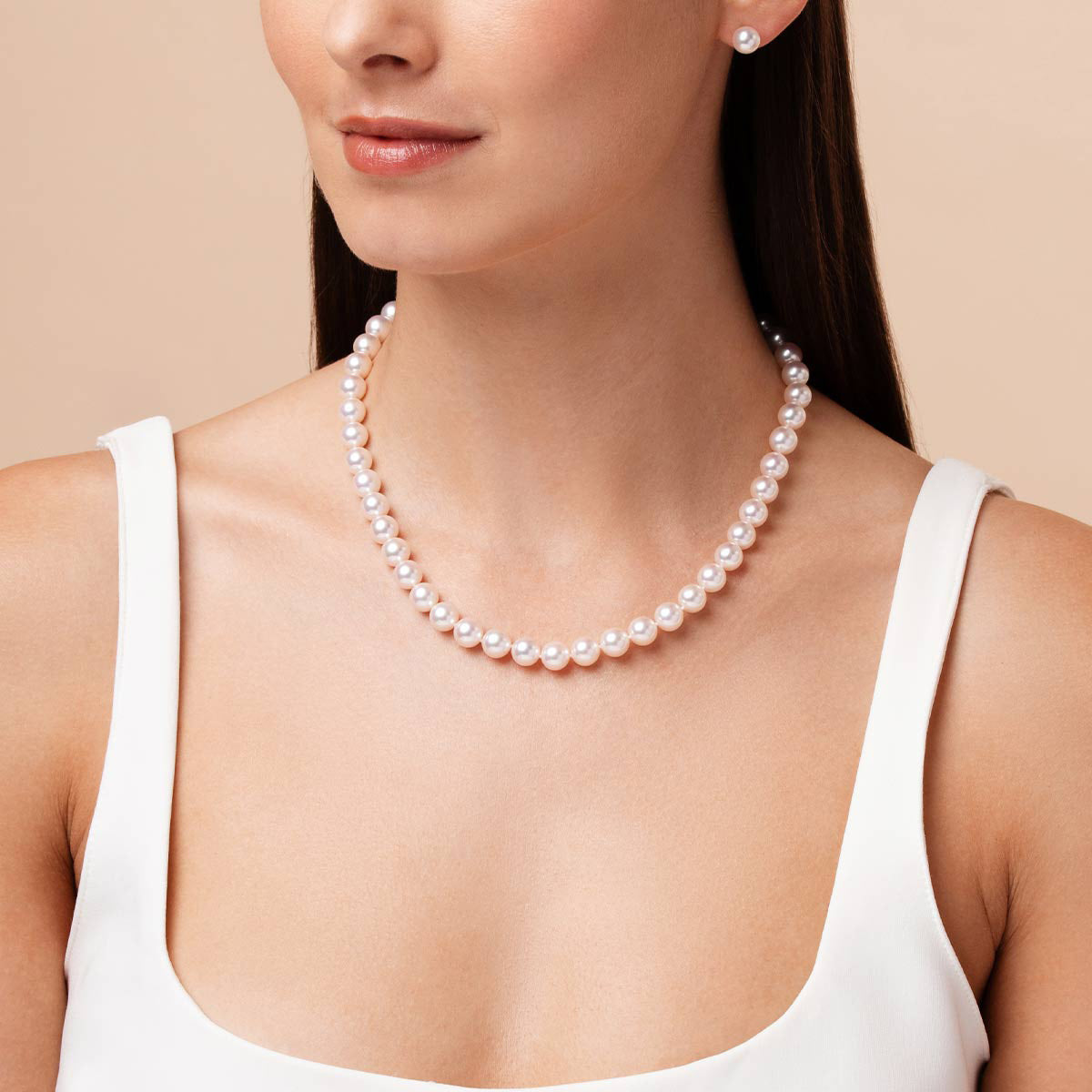 Comprised of timeless, jewellery box staples our Classic collection is designed to last through the generations. Featuring lustrous AA quality Akoya pearls, set in 18K gold, this necklace is both classic and elegant. AA quality pearls exhibit a beautiful lustre and clean surface, an exquisite choice, available in sizes from 6 to 9mm.