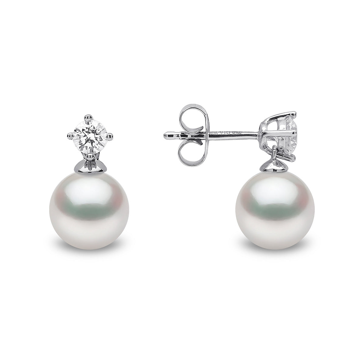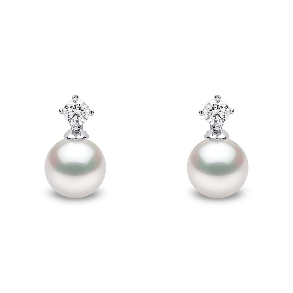 Comprised of timeless, jewellery box staples, our Classic collection is designed to last through the generations. Featuring lustrous Japanese Akoya pearls beneath scintillating solitaire diamonds, these earrings are delicate and elegant. Pair with the matching pendant to complete the set.