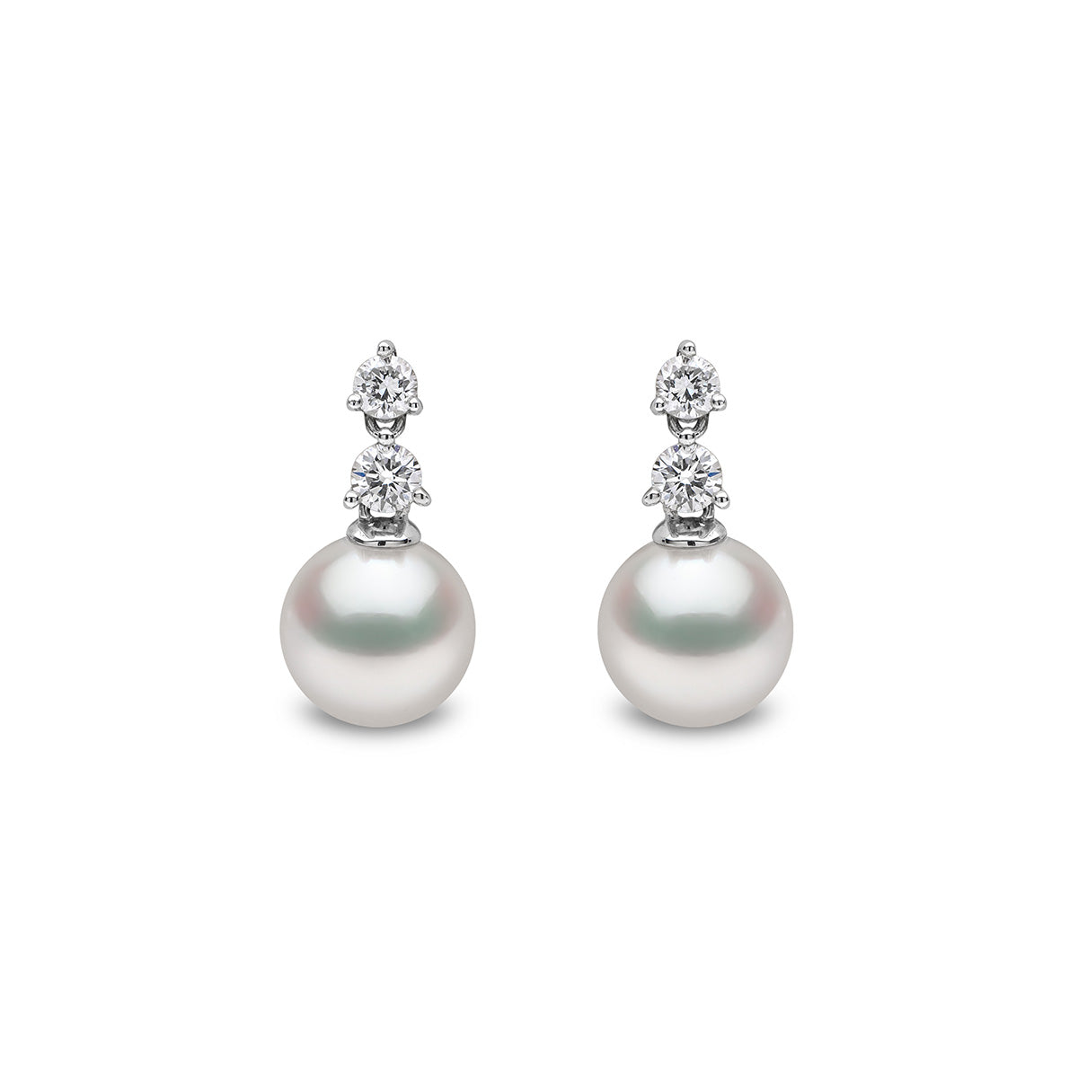 Yoko London Diamond Classic 18K Gold Akoya Pearl Double Diamond Earrings
