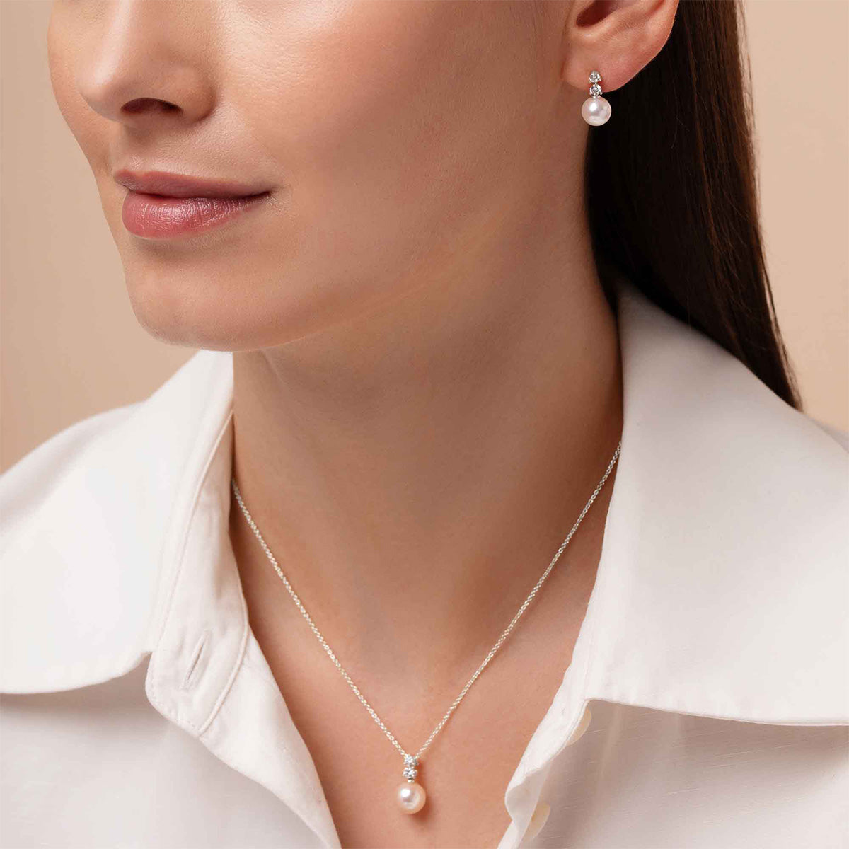 Comprised of timeless, jewellery box staples, our Diamond Classic collection is designed to last through the generations. Featuring two descending round cut diamonds set above a radiant and lustrous Akoya pearl, delicately suspended in 18k Gold, these earrings exudes refined elegance. Complete your ensemble with the matching pendant for a timeless set.