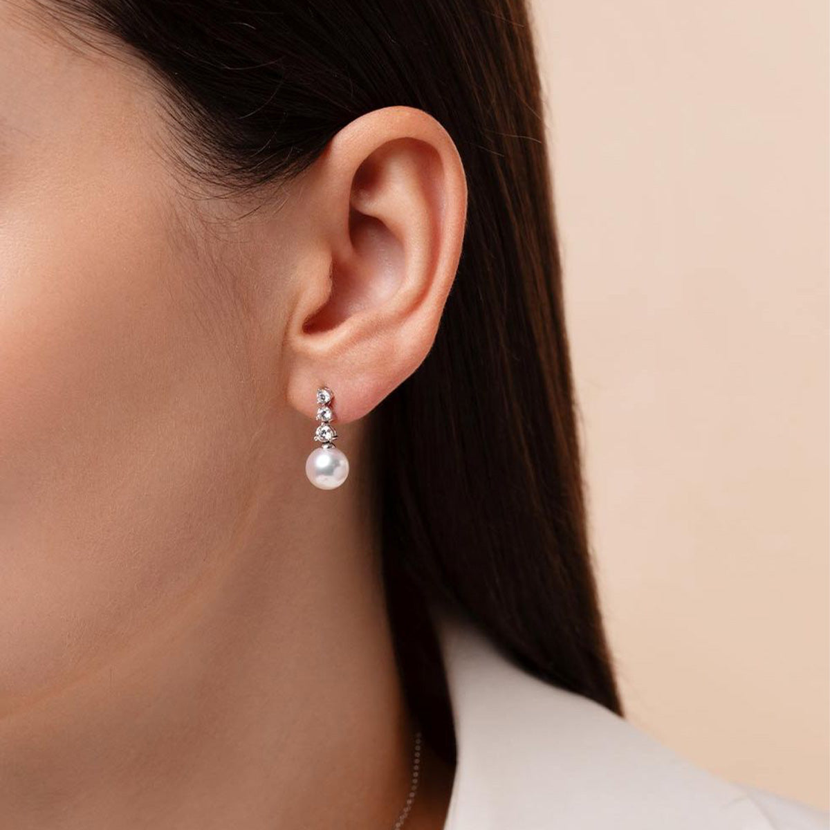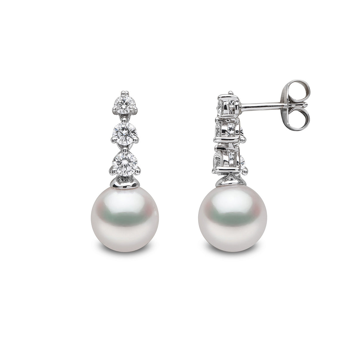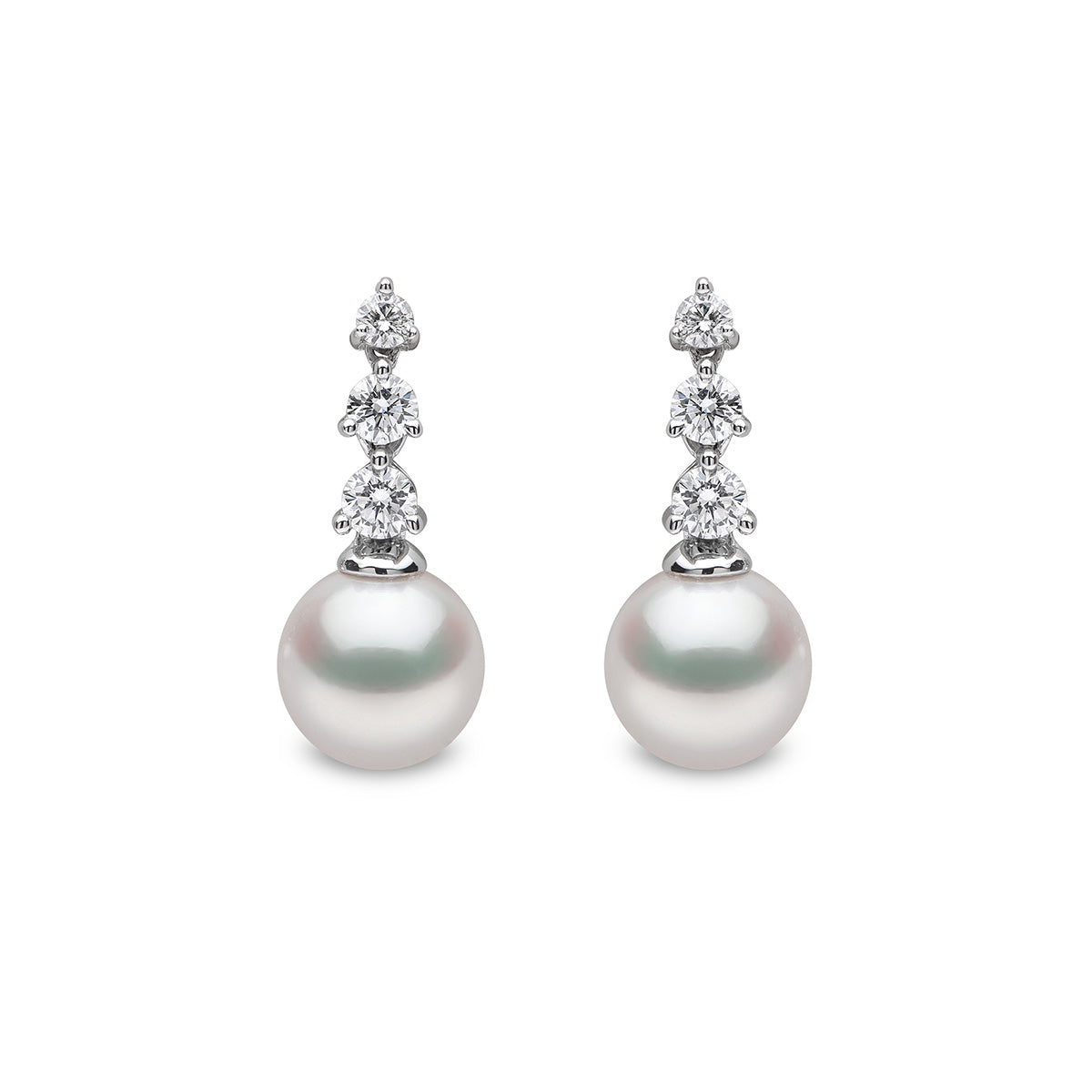 Comprised of timeless, jewellery box staples, our Diamond Classic collection is designed to last through the generations. Featuring three descending round cut diamonds set above a radiant and lustrous Akoya pearl, delicately suspended in 18k Gold, these earrings exudes refined elegance. Complete your ensemble with the matching pendant for a timeless set.