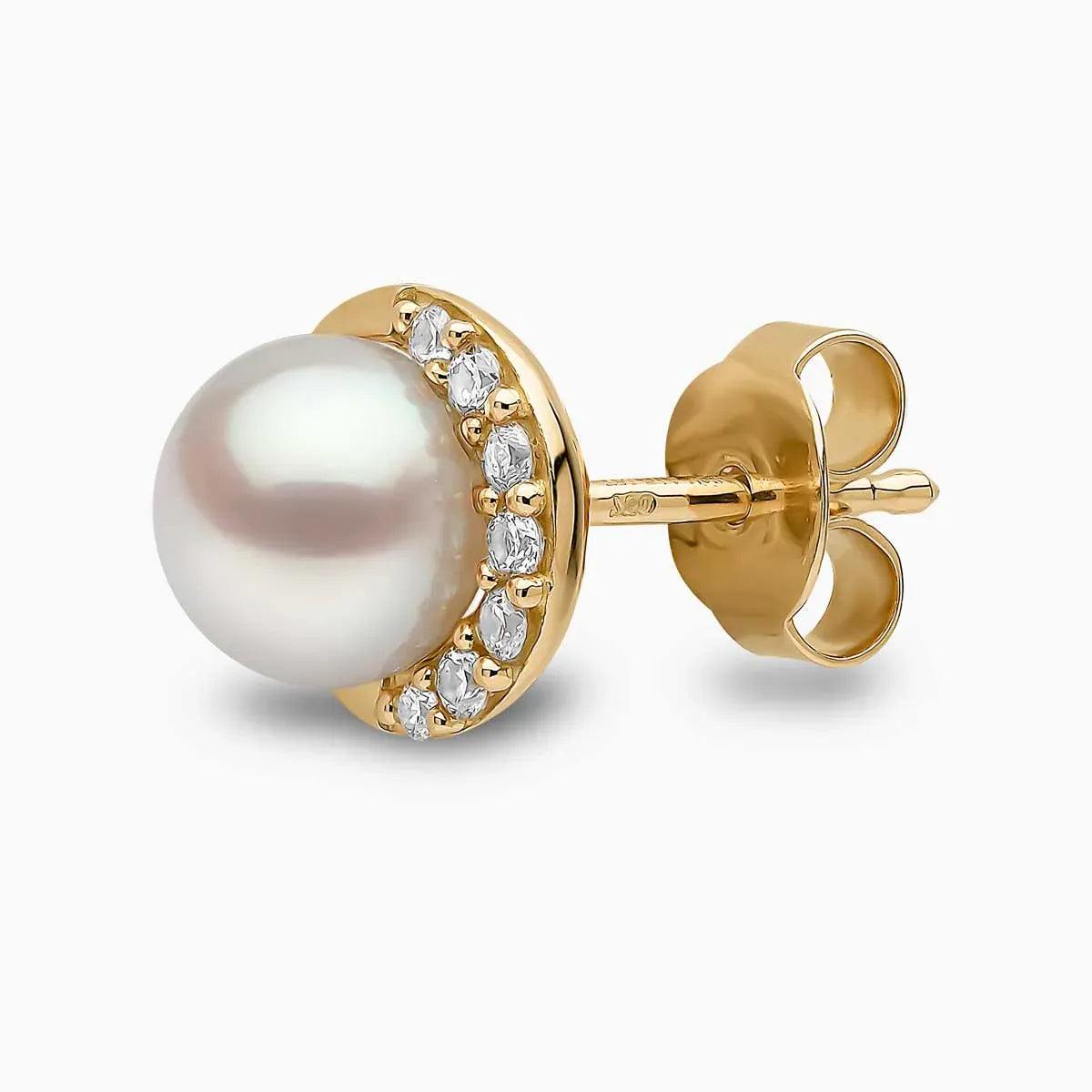 18KY Yoko FW Pearl 6-6.5MM AA & Diamond 0.122CT Earrings