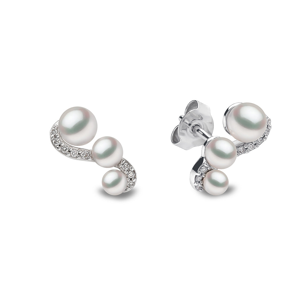 Designed to be worn anytime, anywhere, our Sleek collection exudes creativity and confidence. These unique 18K gold earrings feature 3-5mm pearls set amongst clean diamond curves. Subtle, yet striking, these pearl studs will elevate any outfit.