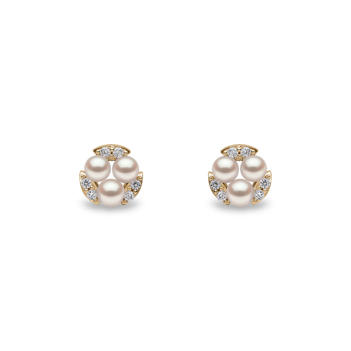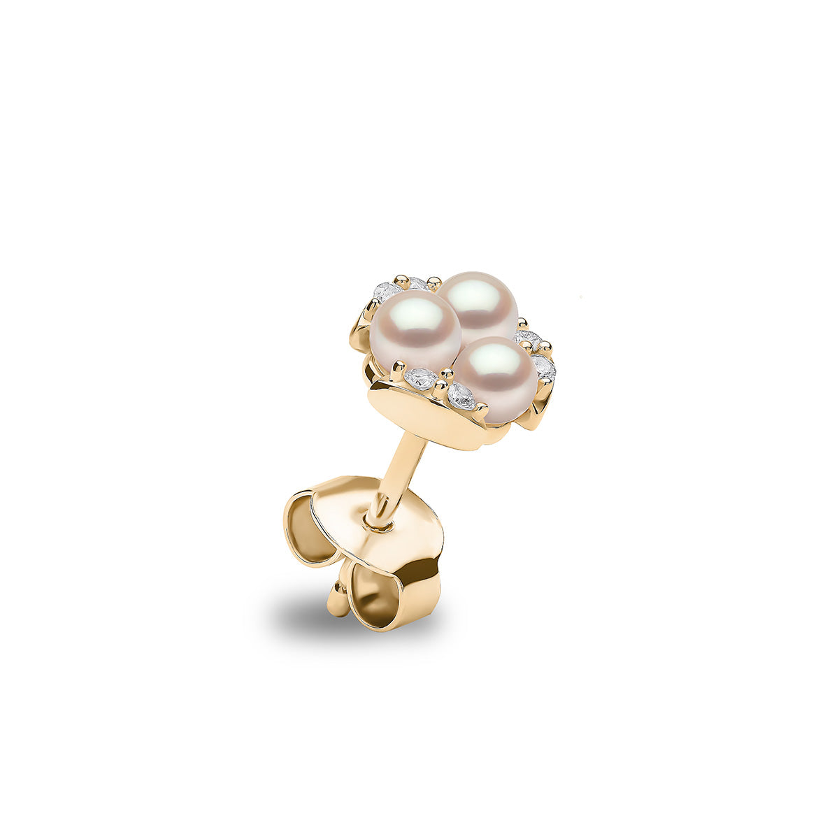 Yoko London Sleek 18K Gold Triple Pearl and Diamond Stud Earrings