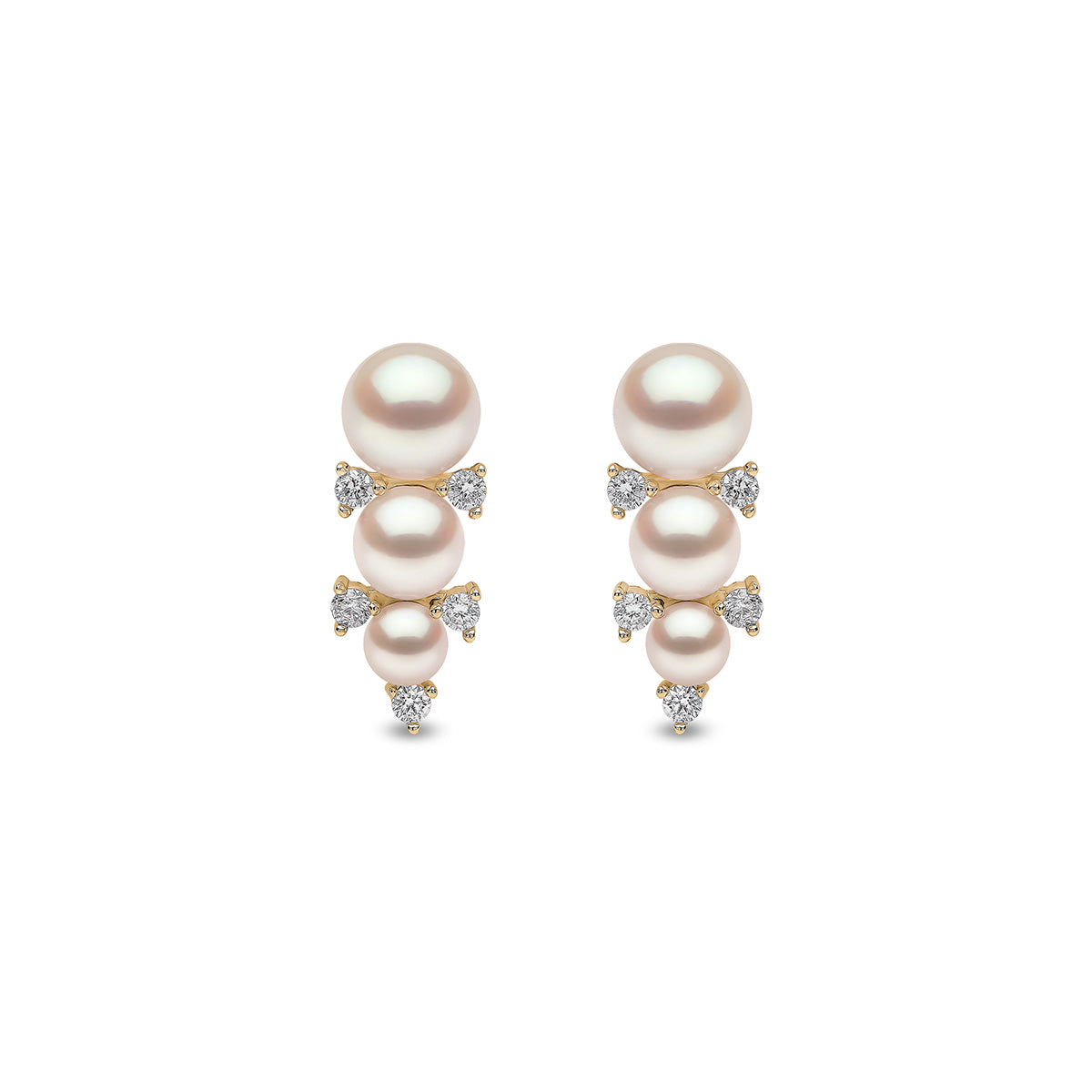 Yoko London Sleek 18K Gold Triple Pearl and Diamond Stud Earrings