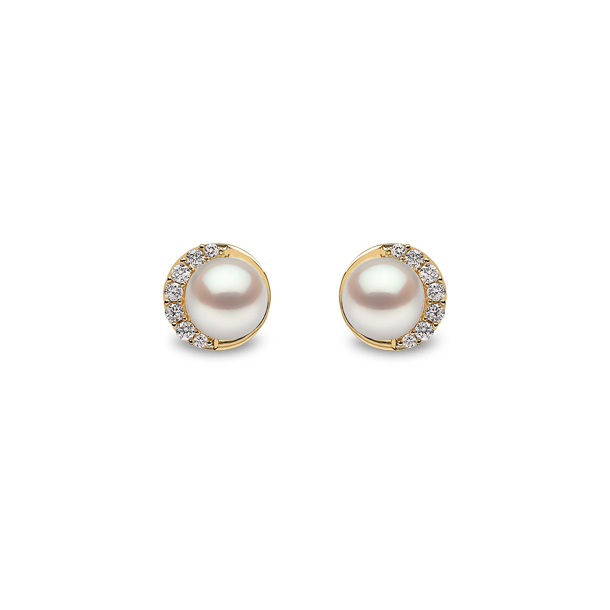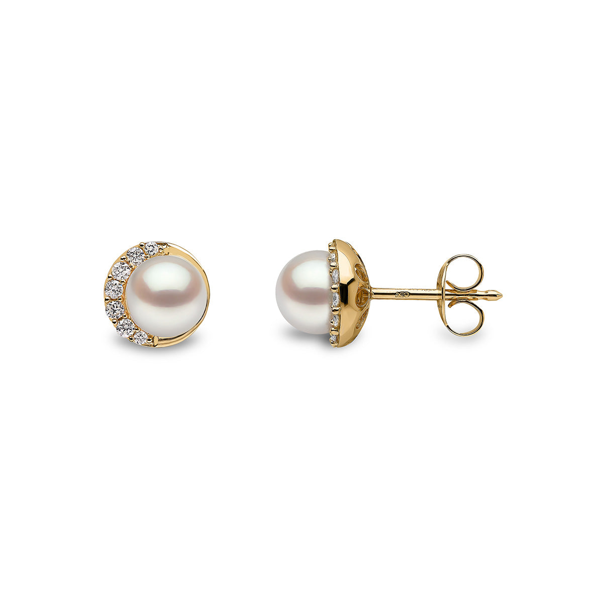 Yoko London Trend 18K Gold Freshwater Pearl And Diamond Half Moon Stud Earrings