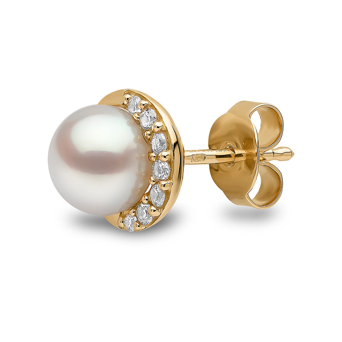 Putting style at the forefront of each design, our Trend collection is perfect for the modern woman. These 18K gold earrings feature high quality 6-6.5mm Freshwater pearls, surrounded by scintillating diamonds. A contemporary twist on a classic design, these earrings will elevate any outfit.