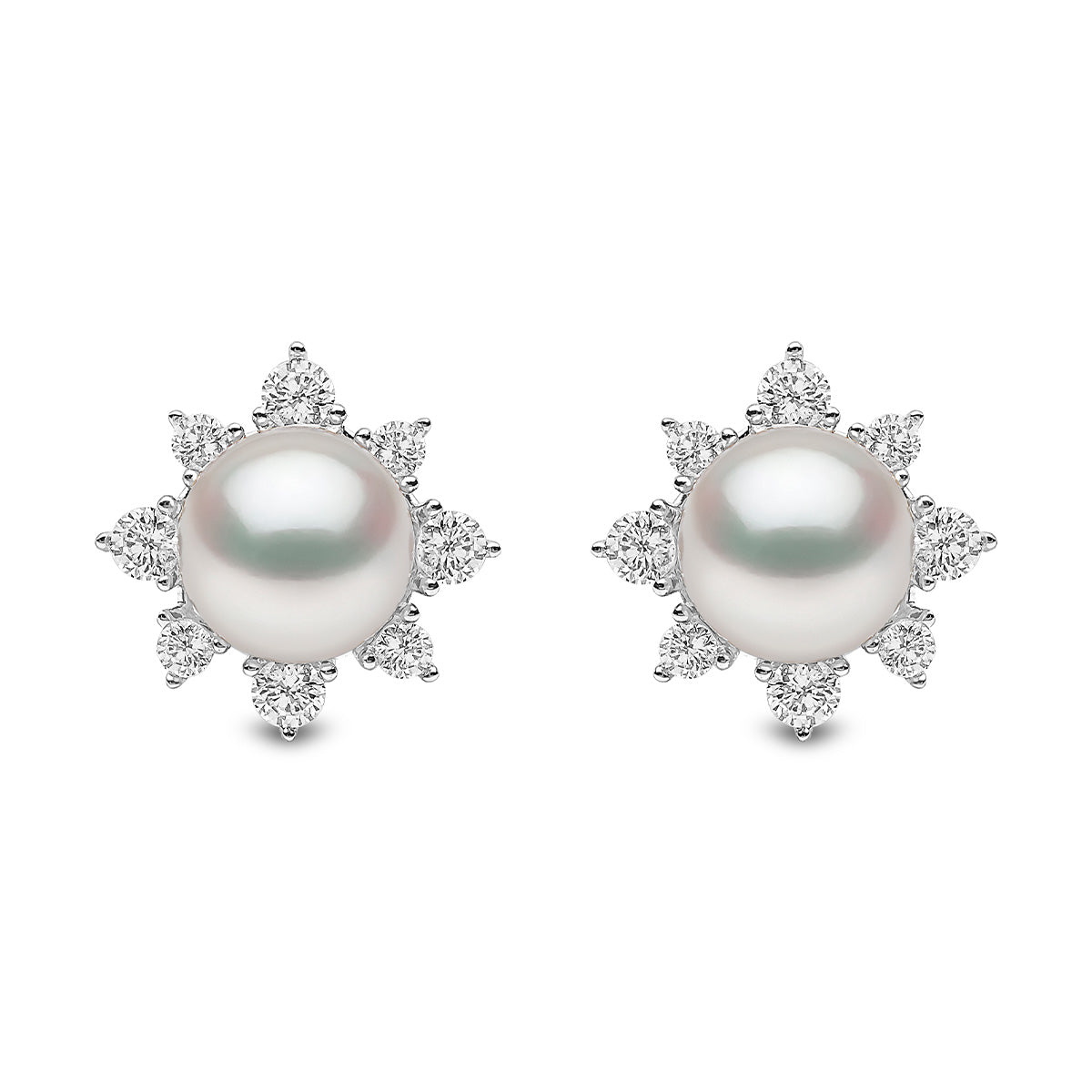 Putting style at the forefront of each design, our Trend collection is perfect for the modern woman. These 18K gold earrings feature high quality 6-6.5mm Freshwater pearls, surrounded by scintillating diamonds. A contemporary twist on a classic design, these earrings will elevate any outfit.