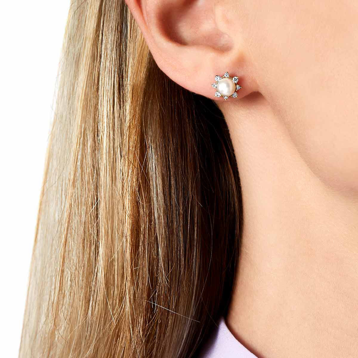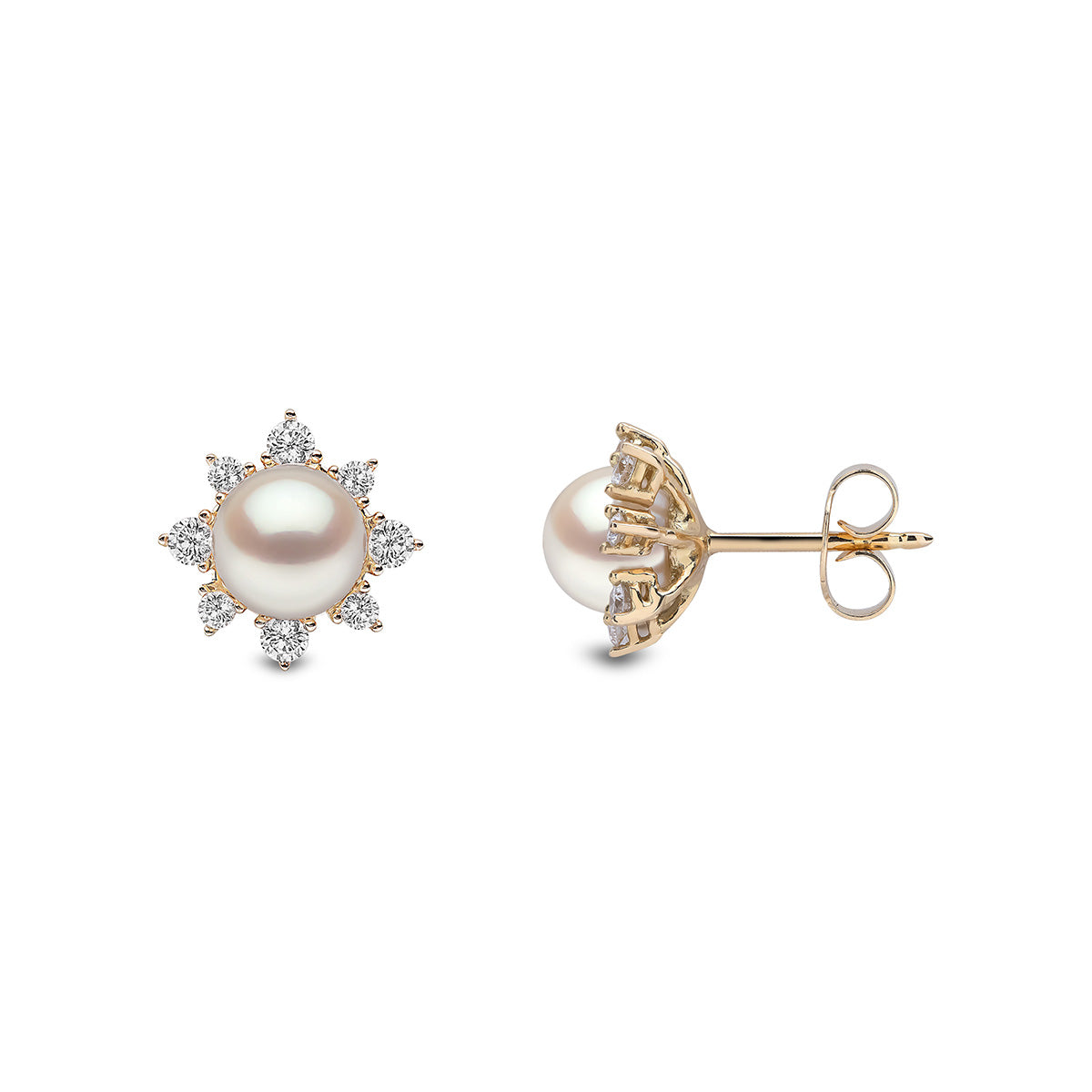 Putting style at the forefront of each design, our Trend collection is perfect for the modern woman. These 18K gold earrings feature high quality 6-6.5mm Freshwater pearls, surrounded by scintillating diamonds. A contemporary twist on a classic design, these earrings will elevate any outfit.