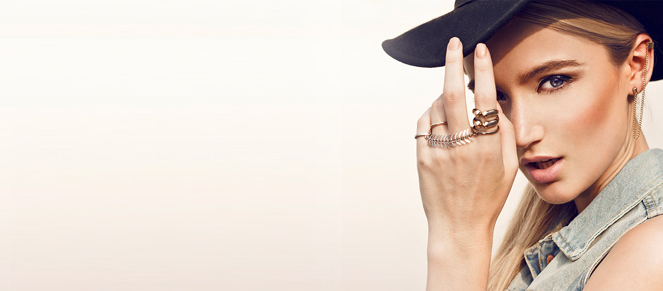 You can also try different methods to stack your rings. Unlike what you might expect from standard stackable rings, the goal is to use pieces that are more separated and distant from one another – the goal in this case is to highlight the mix of the skin and rings.