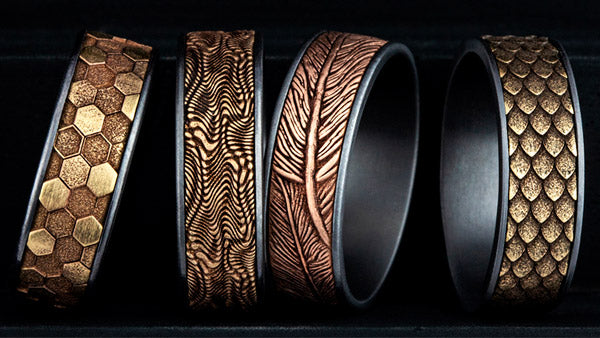 These rings break the barrier of traditional design with countless customization options - such as inlays, center cuts, patterns, finishes, and metals. After all, your wedding band should be as unique as you are.