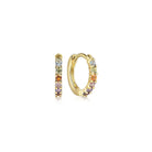 10mm 14K Yellow Gold Rainbow Color Stone Huggie Earrings