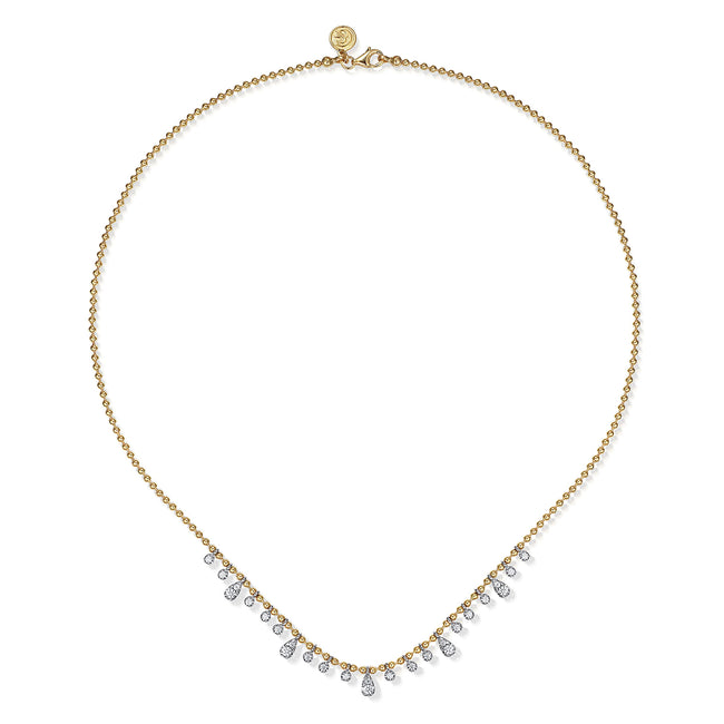 14K White and Yellow Gold Diamond Bujukan Droplet Necklace