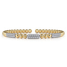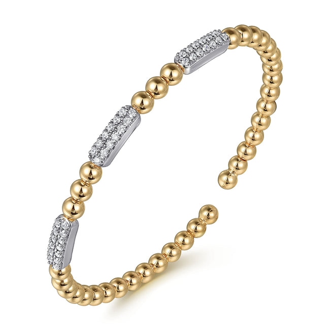 You're reviewing: 14K White and Yellow Gold Diamond Pavé Three Station Bar Bujukan Beads Split Bangle Bracelet