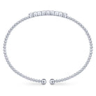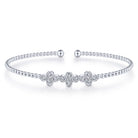 14K White Gold Bujukan Bead Cuff Bracelet with Three Quatrefoil Diamond Stations