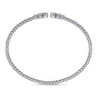 14K White Gold Bujukan Bead Split Cuff Bracelet with Bezel Set Diamonds