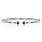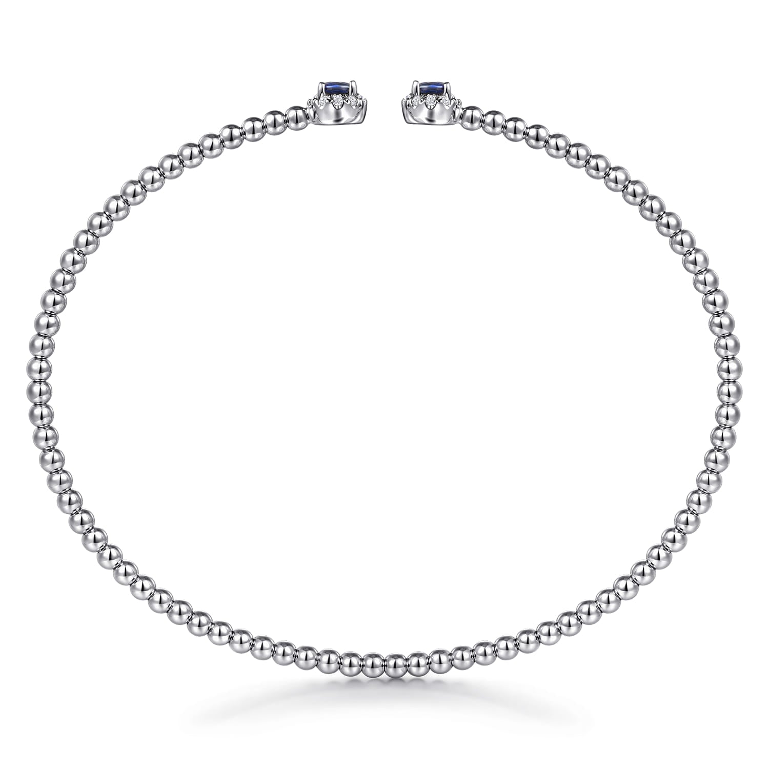 14K White Gold Bujukan Bead Split Cuff Bracelet with Sapphire and Diamond
