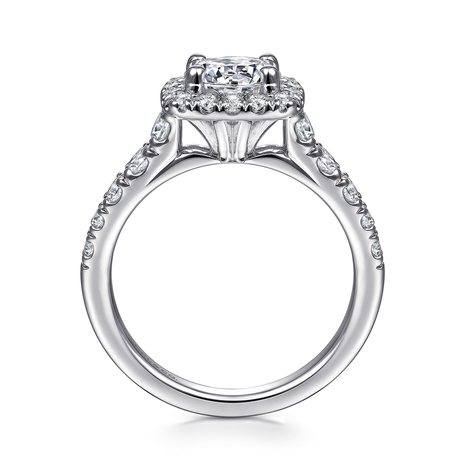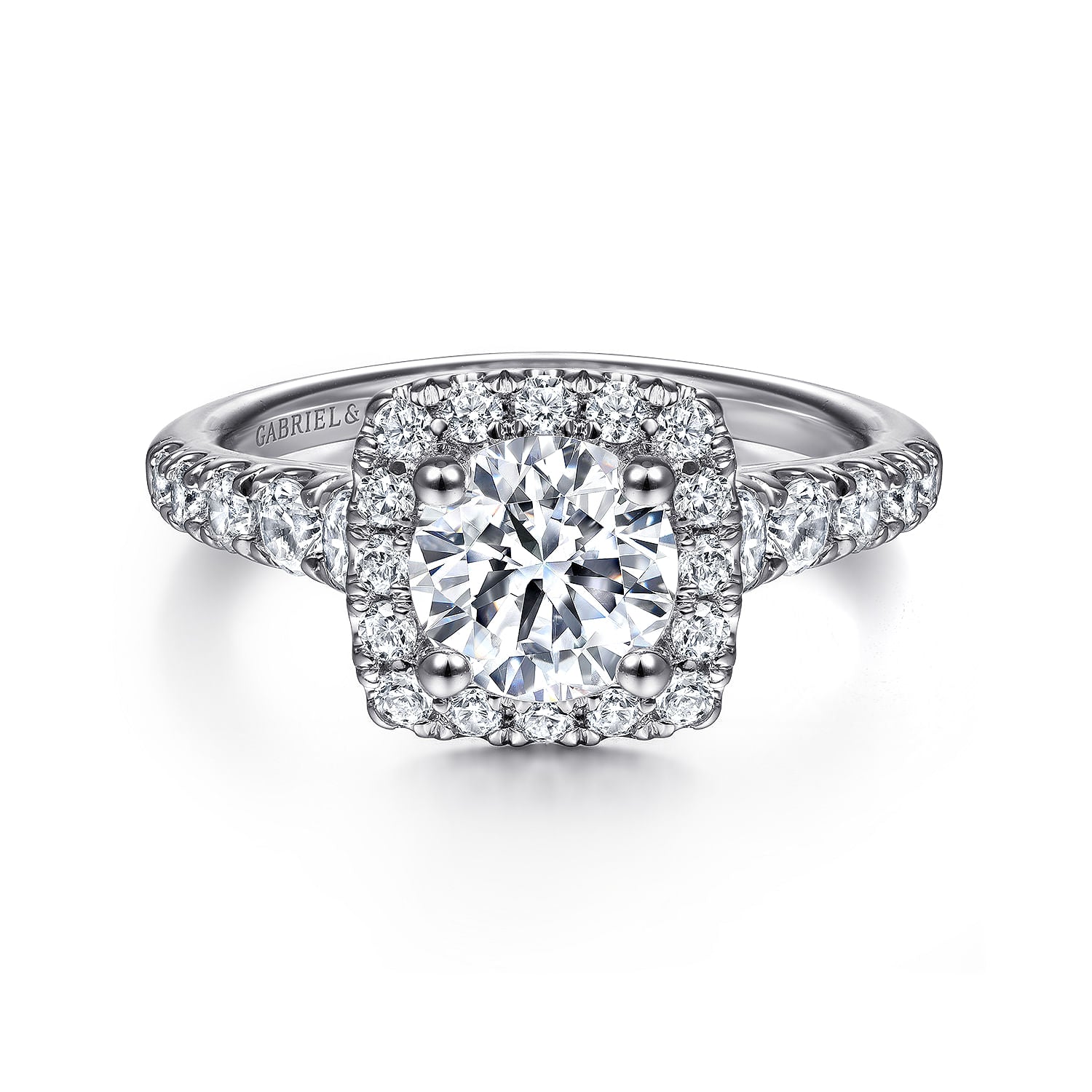 14K White Gold Cushion Halo Round Diamond Engagement Ring